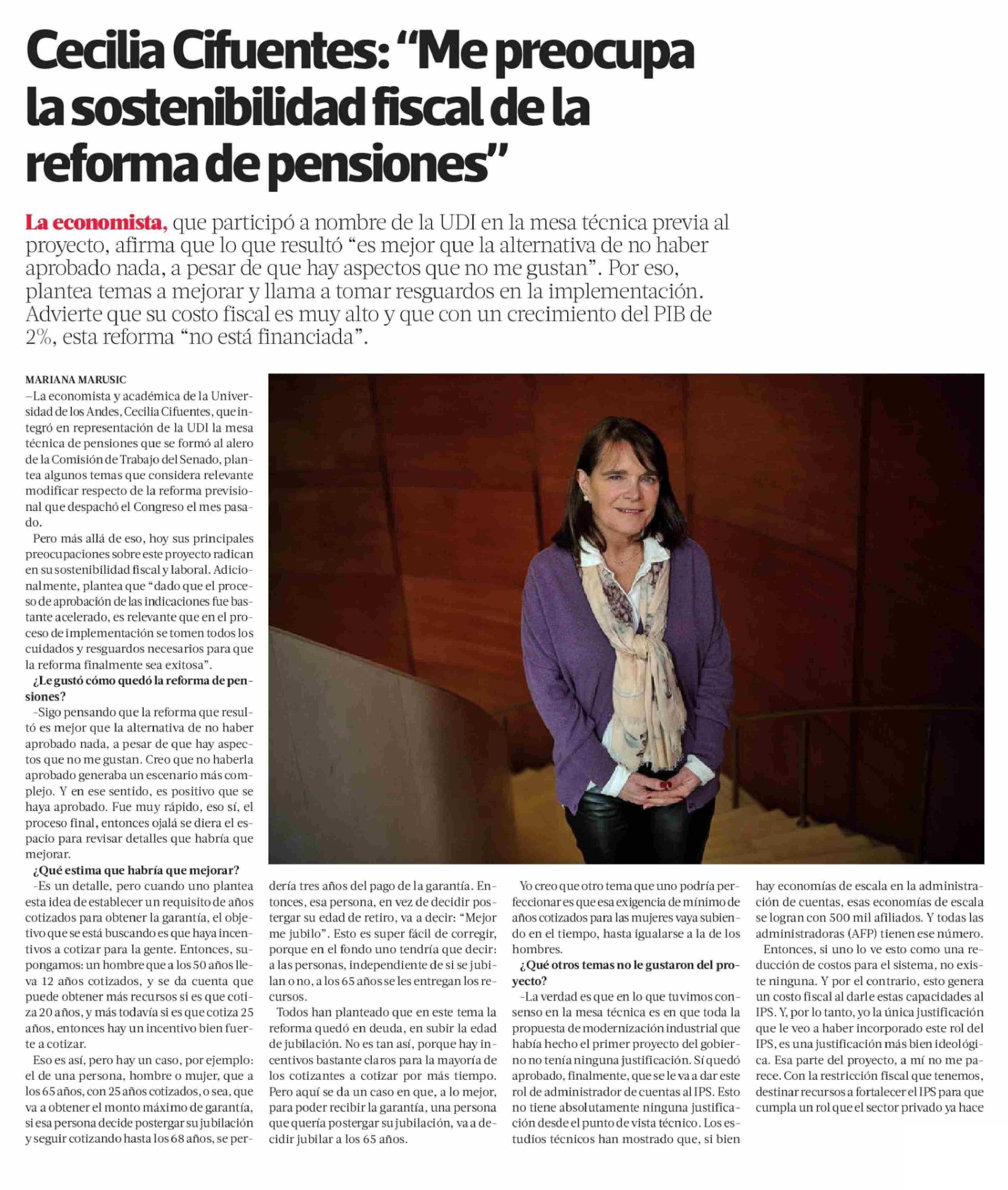 | Título: | Cecilia Cifuentes: “Me preocupa la sostenibilidad fiscal de la reforma de pensiones” |