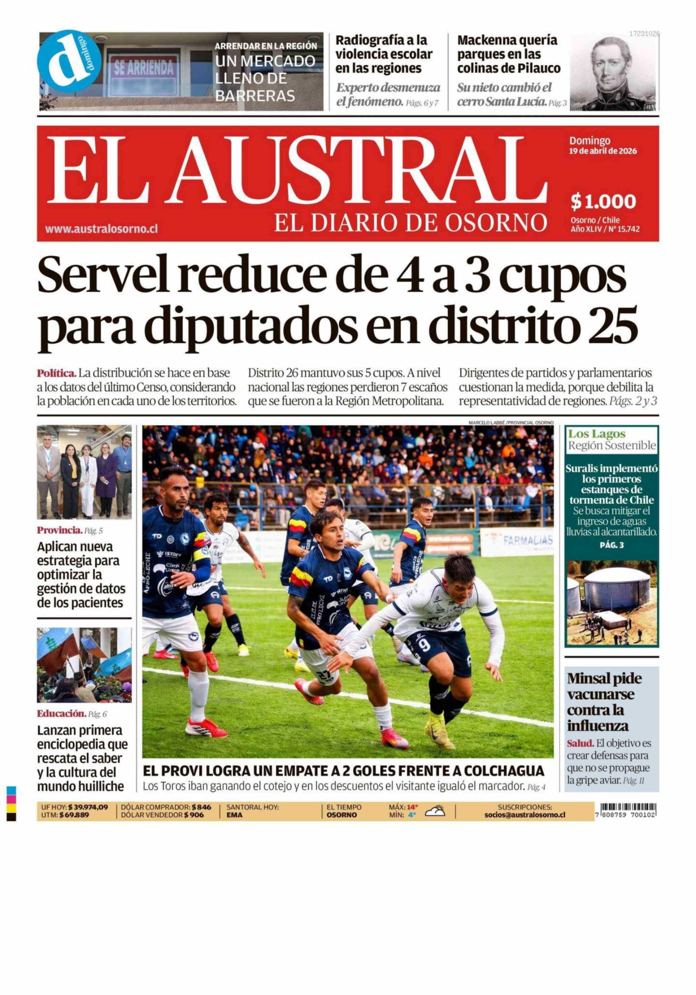 PORTADA EL AUSTRAL DE OSORNO CHILE 19-04-2026 El Austral de Osorno |