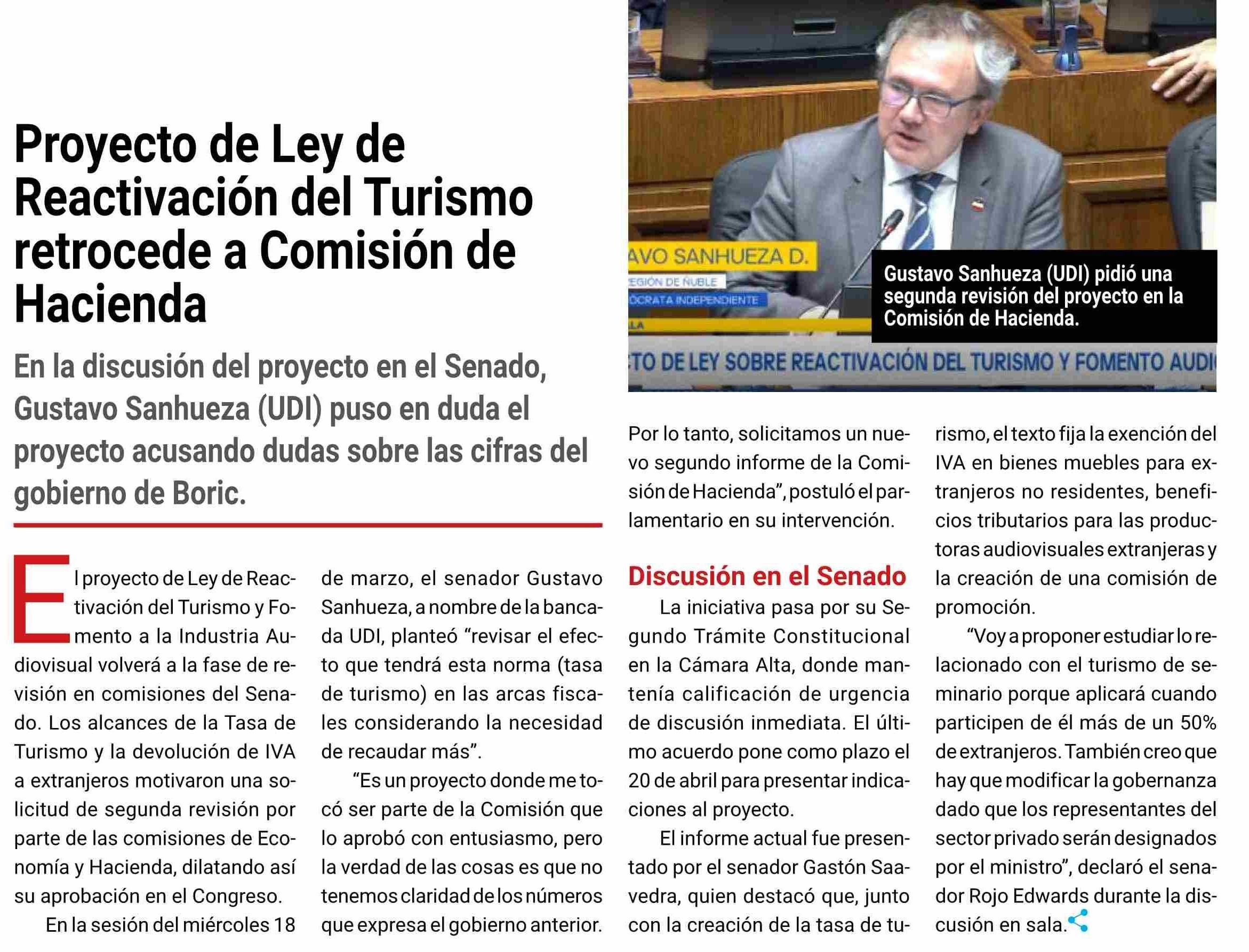 Título: Proyecto de Ley de Reactivación del Turismo retrocede a Comisión de Hacienda