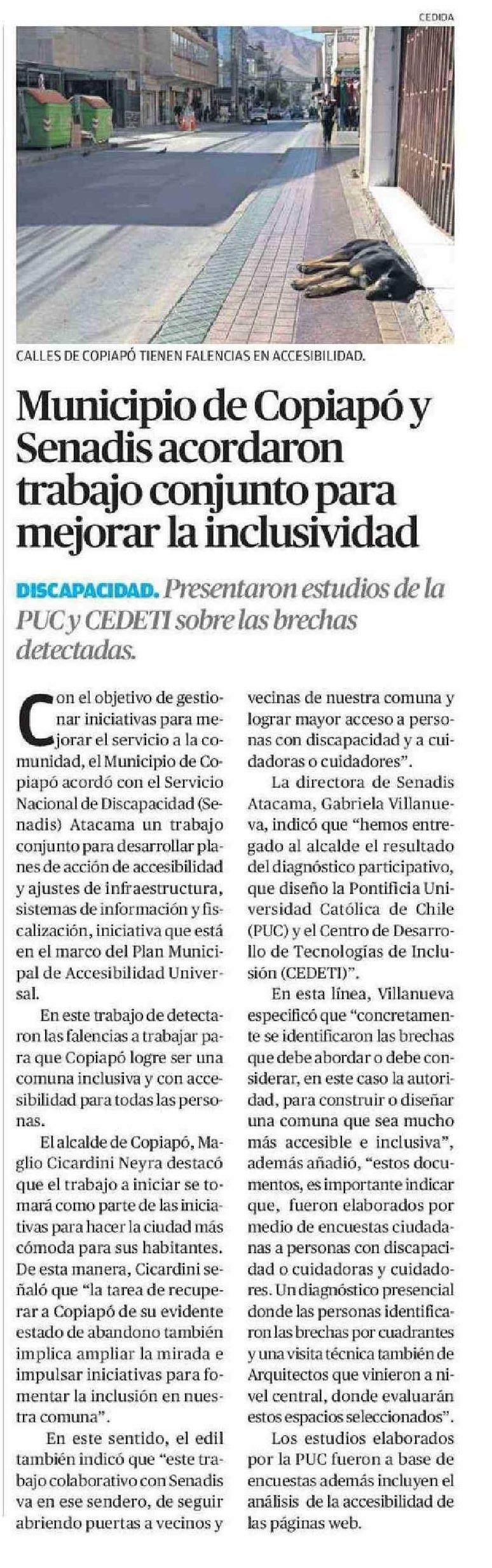 Municipio de Copiapó y Senadis acordaron trabajo conjunto para mejorar la inclusividad 16-03-2025 El Diario de Atacama |