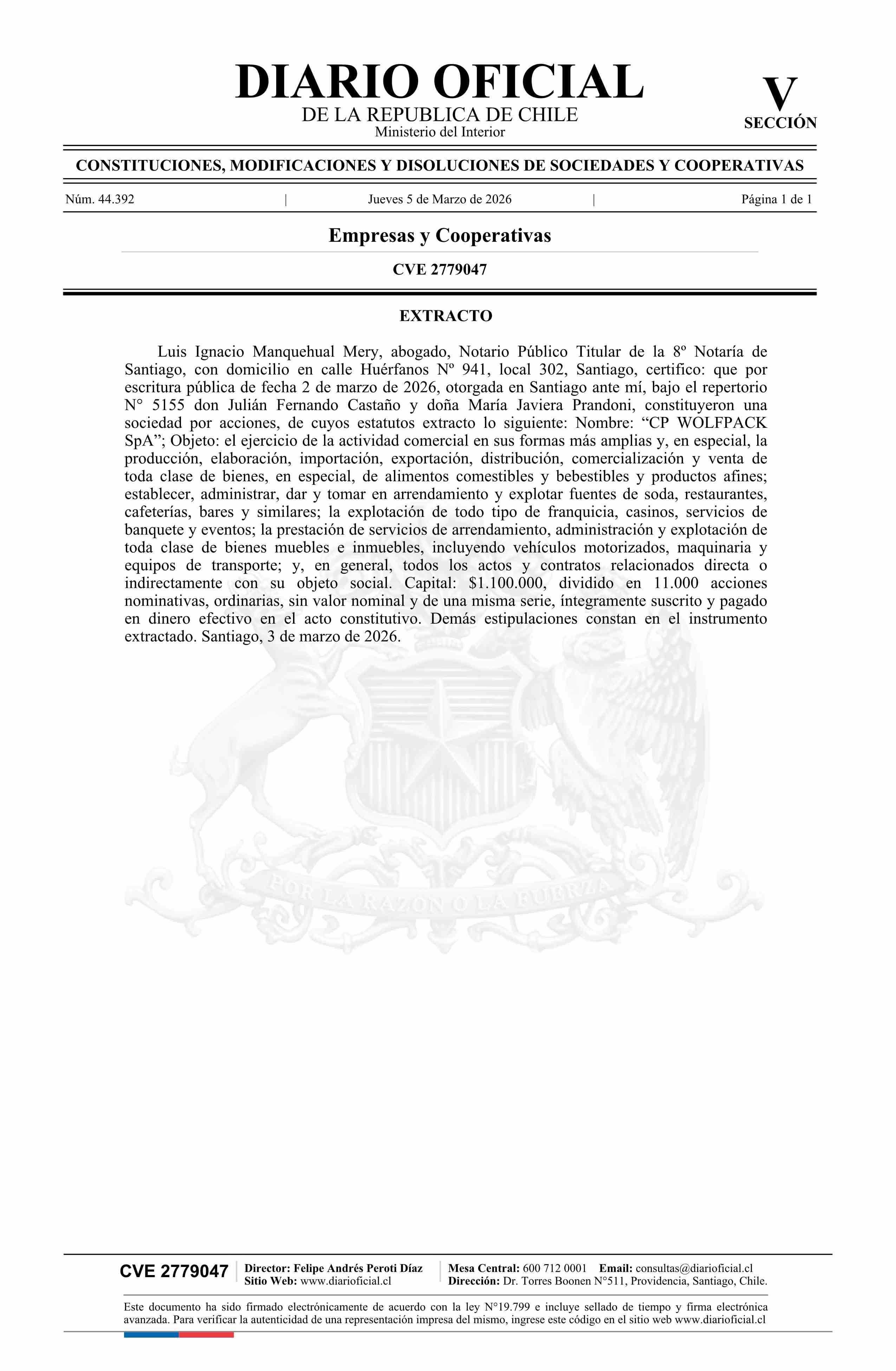 Fuente: Diario Oficial Edición Electrónica (Diario Oficial de Chile - 5 Empresas Y Cooper) Página(s): 26