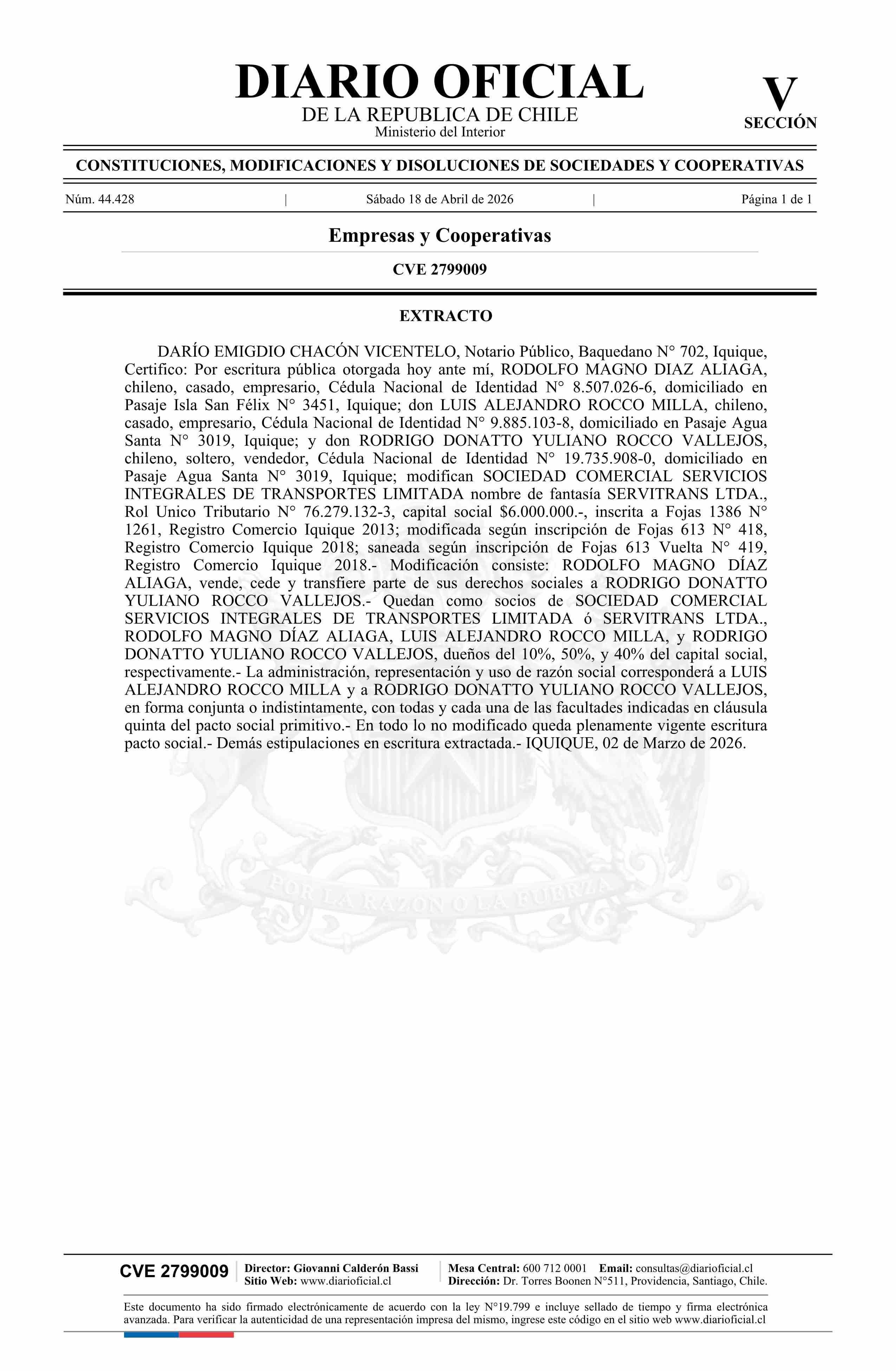 Título: Sociedad Comercial Servicios Integrales de Transportes Limitada 76.279.132-3*