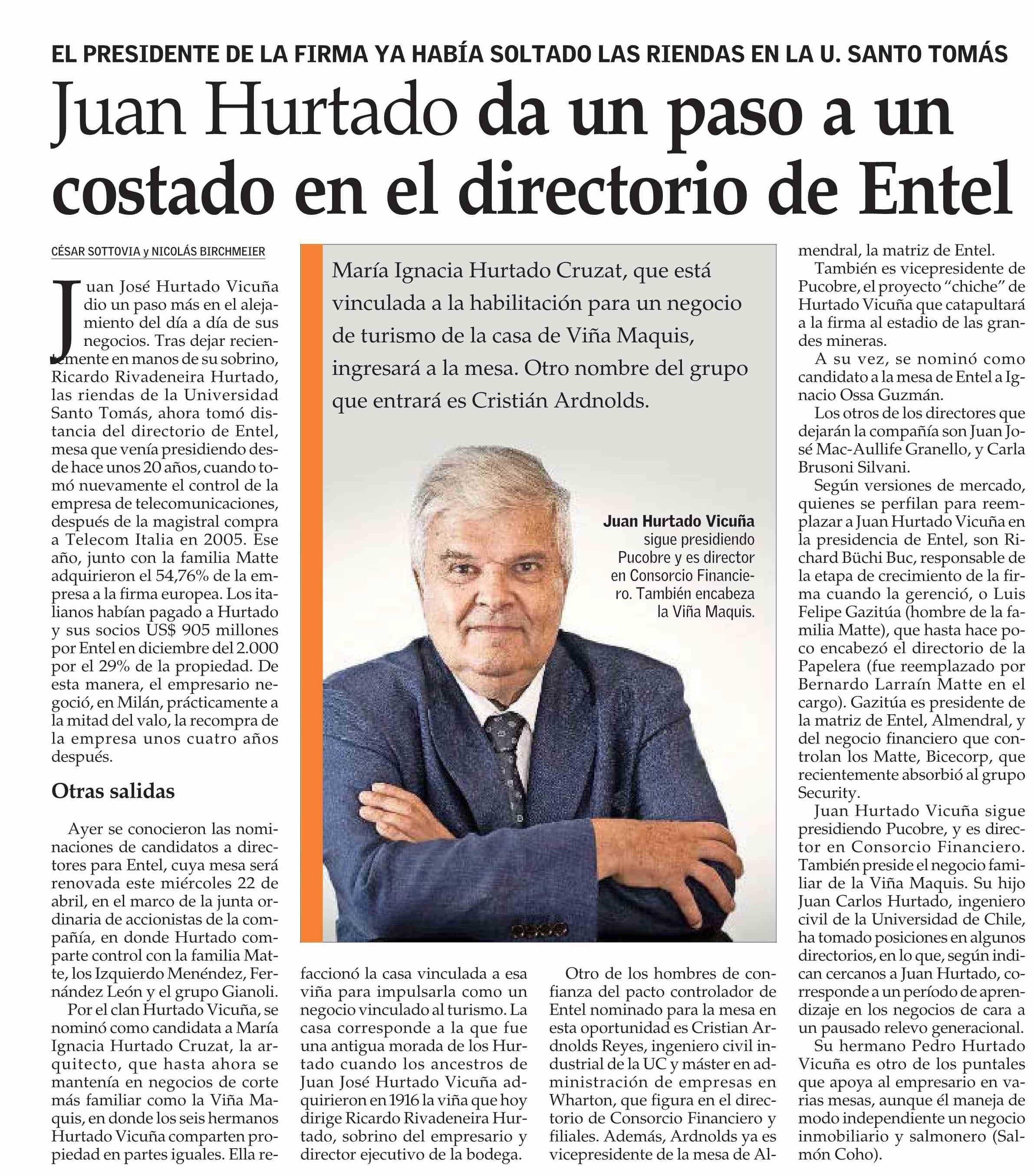 Título: Juan Hurtado da un paso a un costado en el directorio de Entel