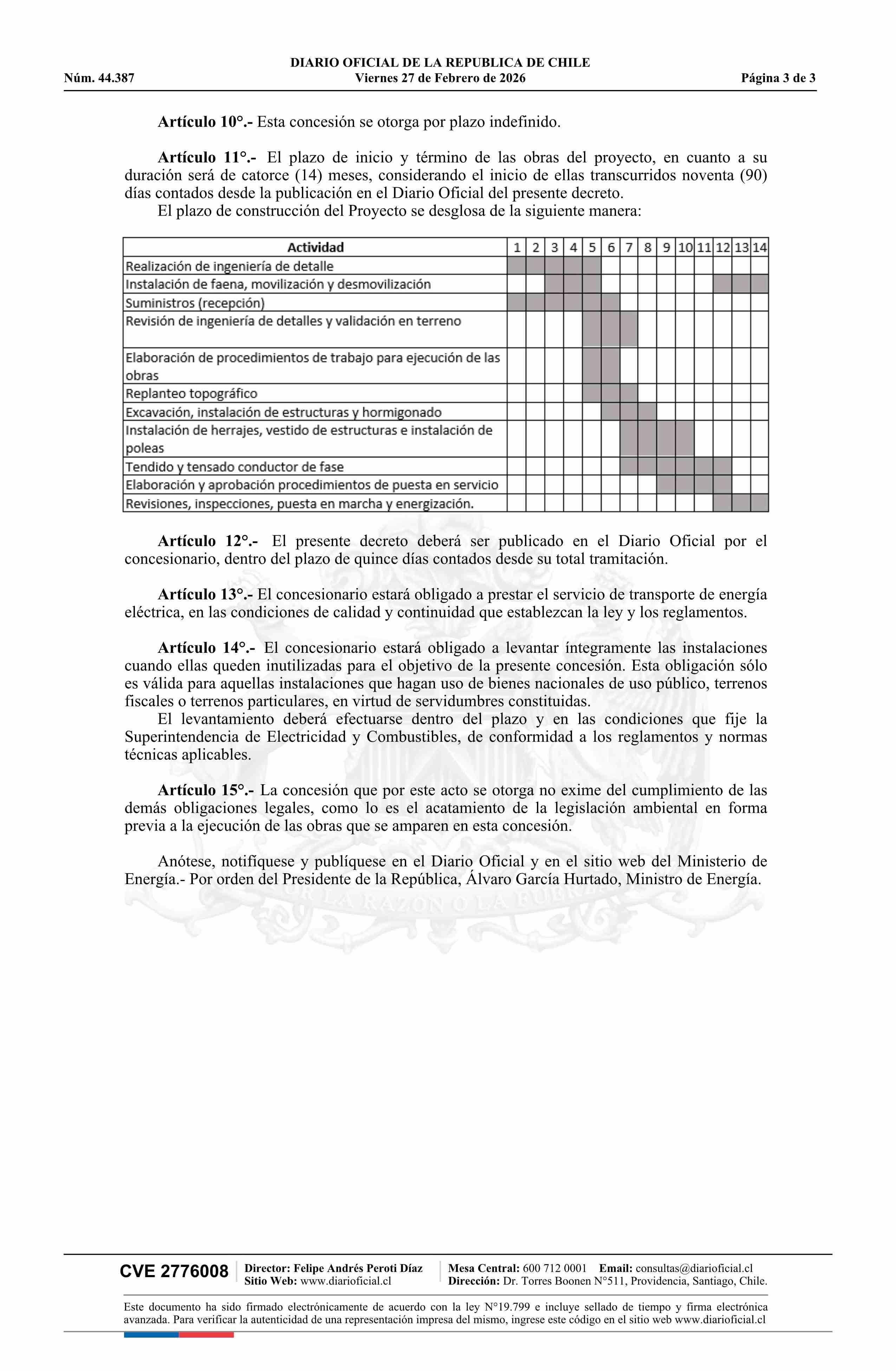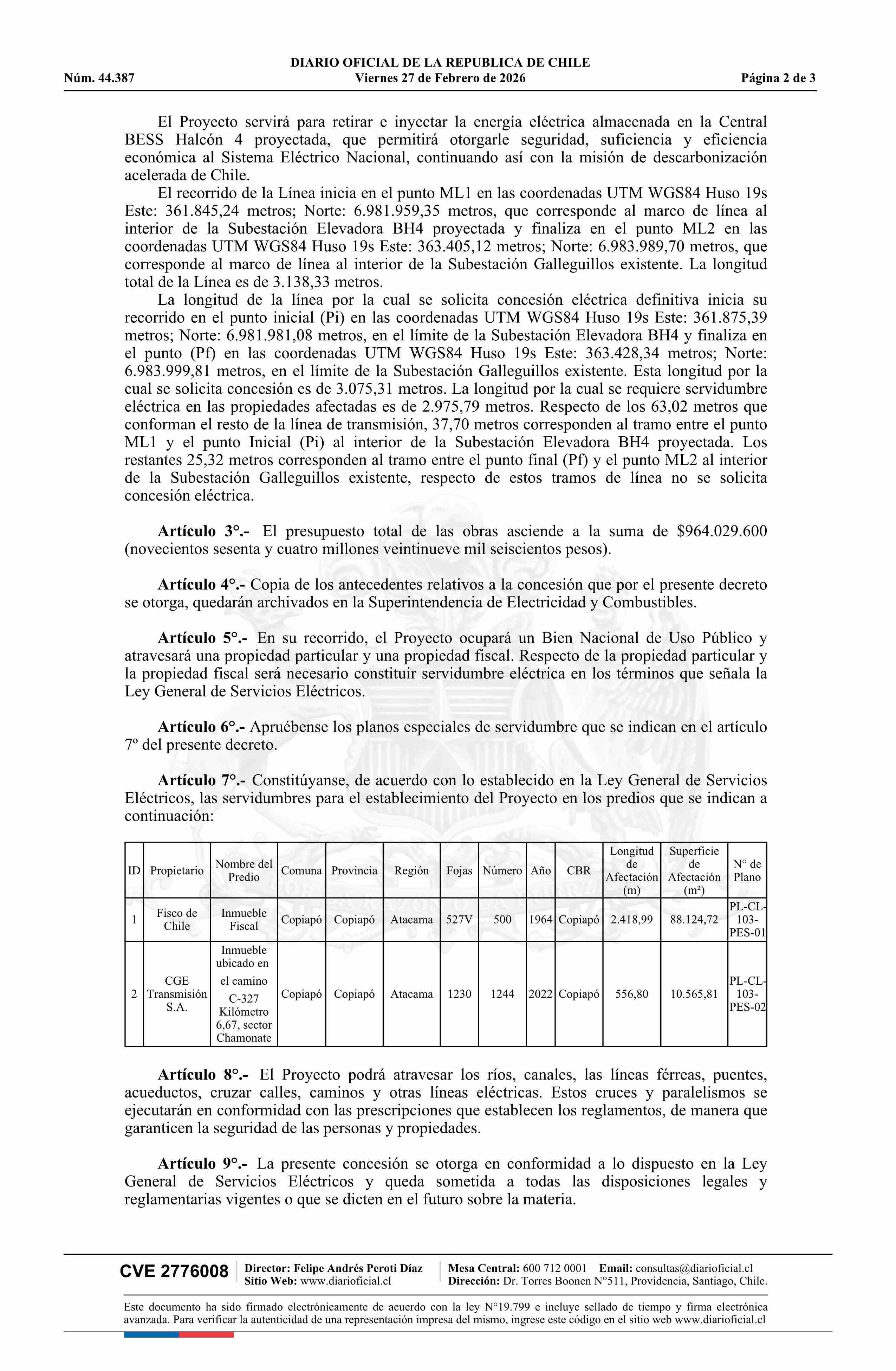 Título: Decreto exento número 48, de 2026.- Otorga a BESS Halcón 4 SpA concesión eléctrica definitiva para establecer el proyecto de transmisión de energía eléctrica denominado Línea de Interconexión 1x110 kV BESS Halcón 4, en la Región de Atacama, provincia y comuna de Copiapó