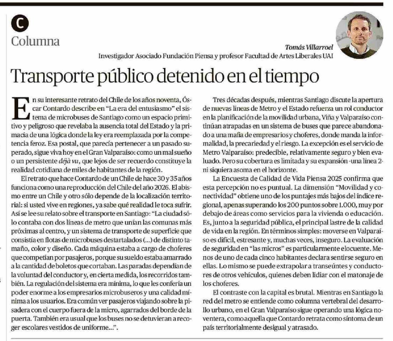 Fecha: 25-01-2026 Sector: Columnas de Opinión Región: Región de Valparaíso