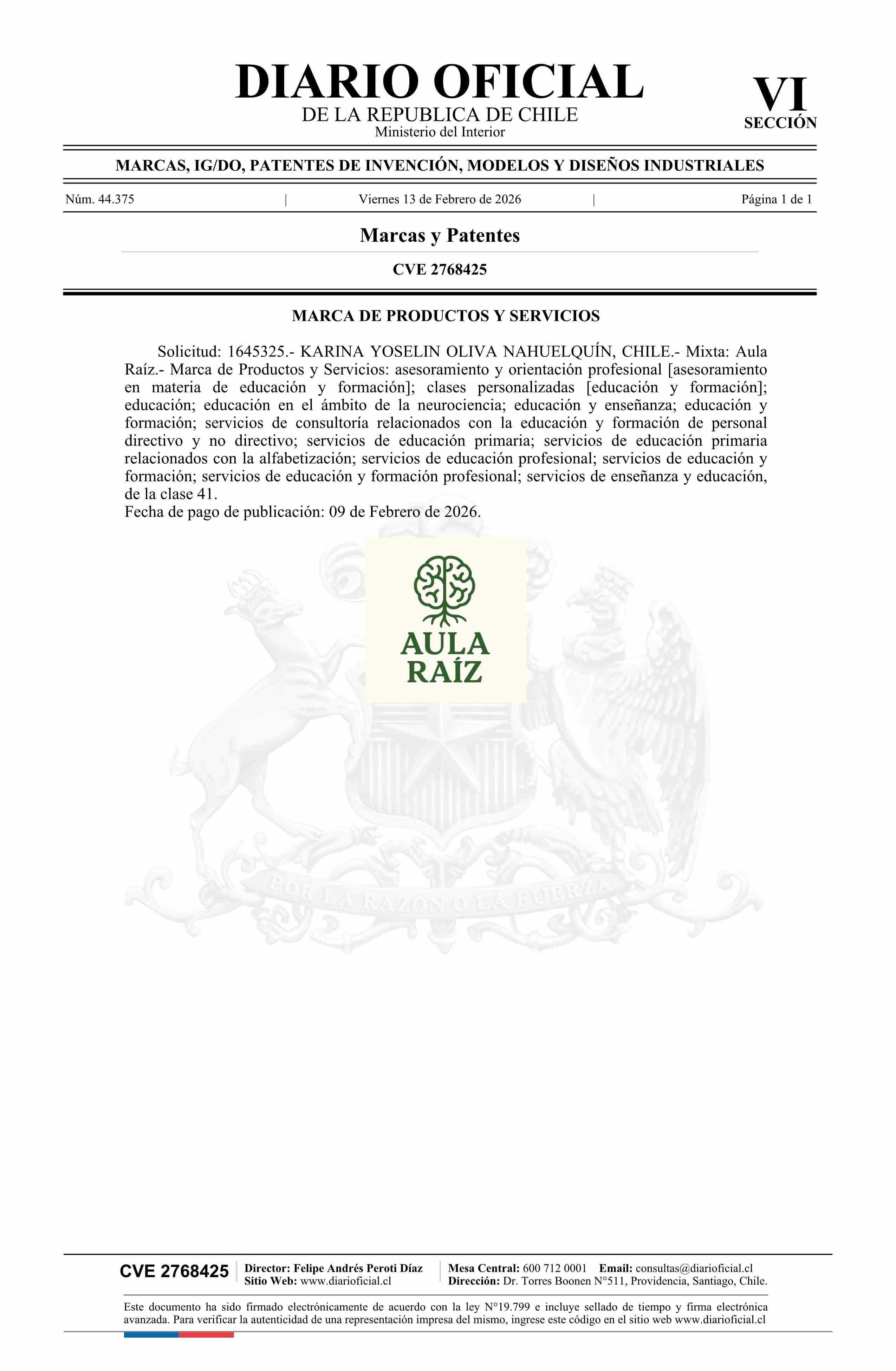 Solicitud número 1645325.- Aula Raíz 13-02-2026 Diario Oficial Edición Electrónica |