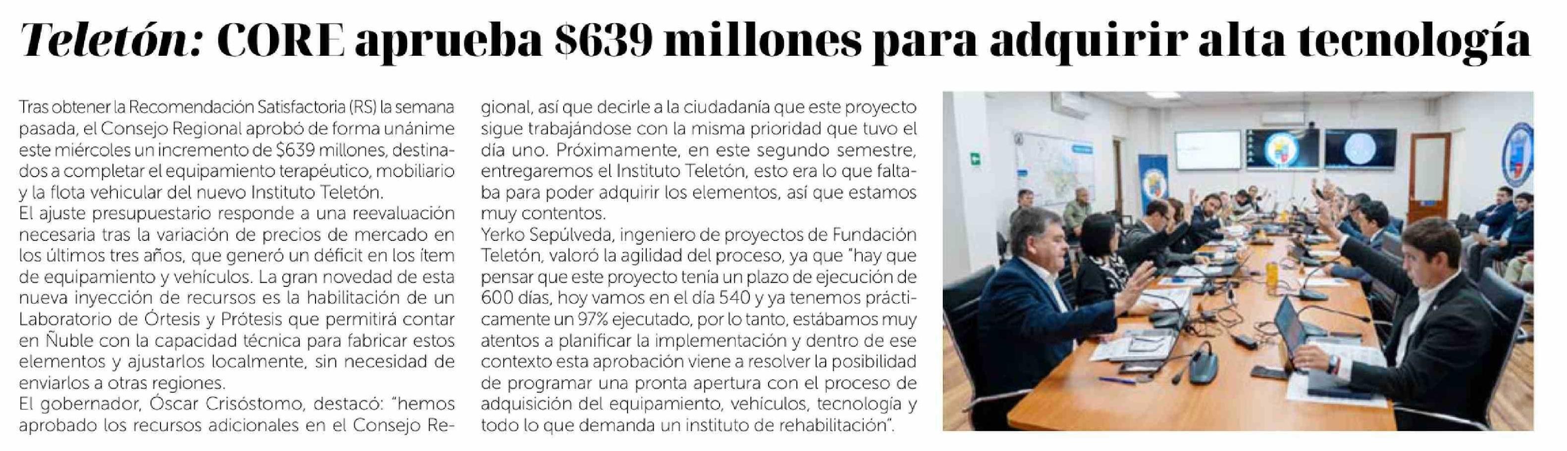 Teletón: CORE aprueba $639 millones para adquirir alta tecnología 16-04-2026 La Discusión |