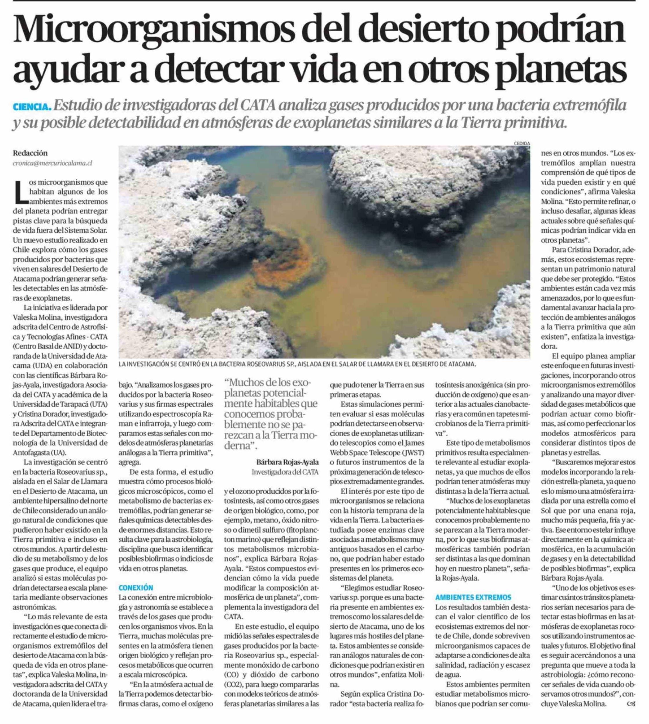 Título: Microorganismos del desierto podrían ayudar a detectar vida en otros planetas