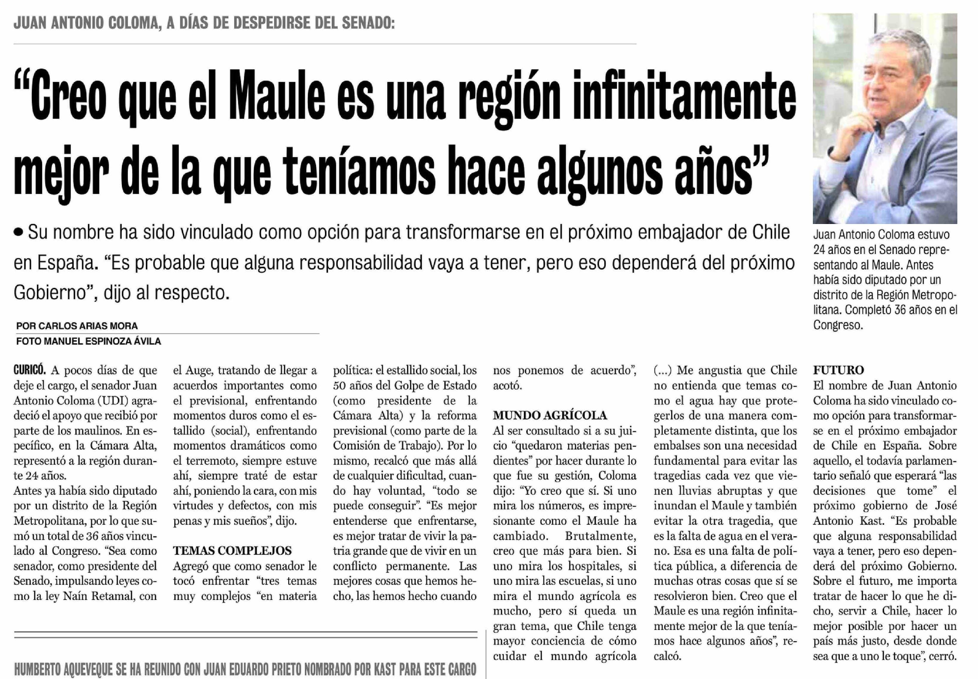 Título: "Creo que el Maule es una región infinitamente mejor de la que teníamos hace algunos años"