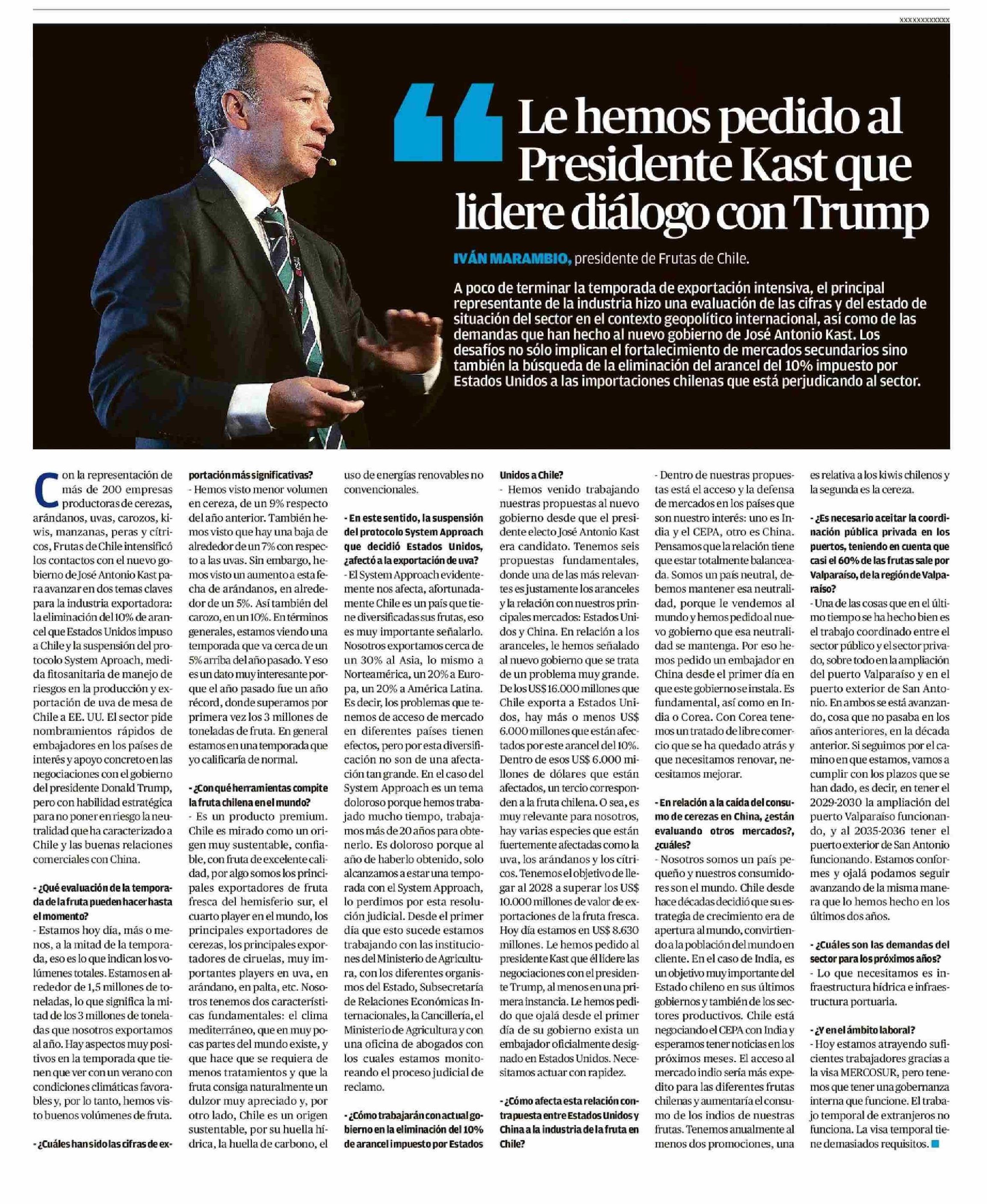 | Título: | Le hemos pedido al Presidente Kast que lidere diálogo con Trump |