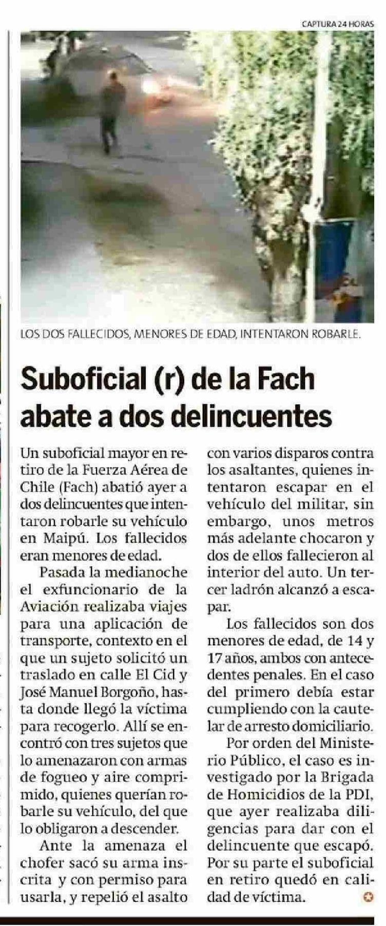 | Título: | Suboficial (r) de la Fach abate a dos delincuentes |