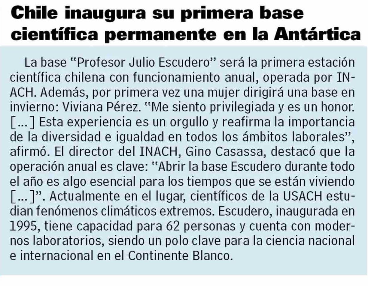 Título: Chile inaugura su primera base científica permanente en la Antártica