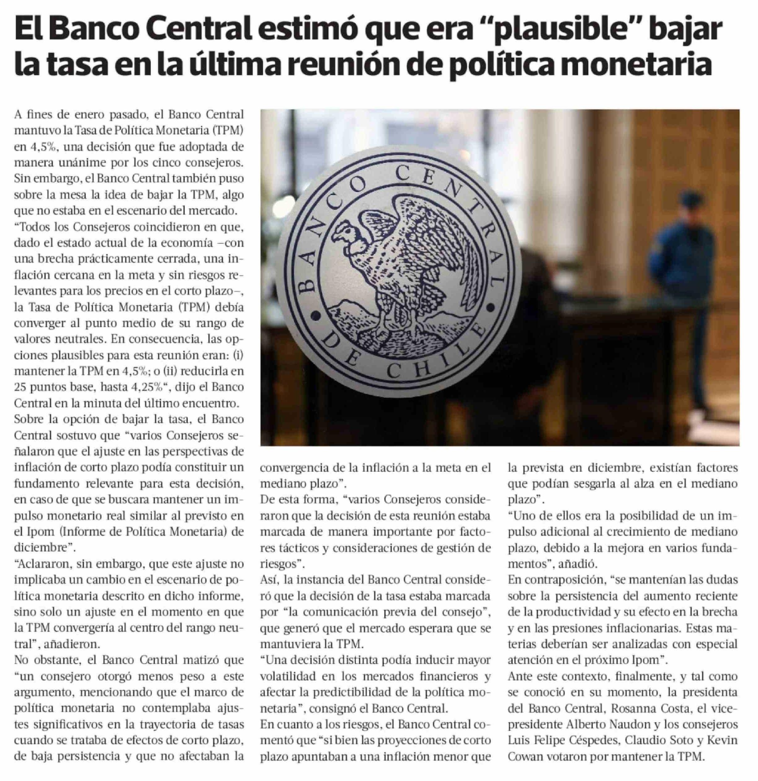 Título: El Banco Central estimó que era "plausible" bajar la tasa en la última reunión de política monetaria