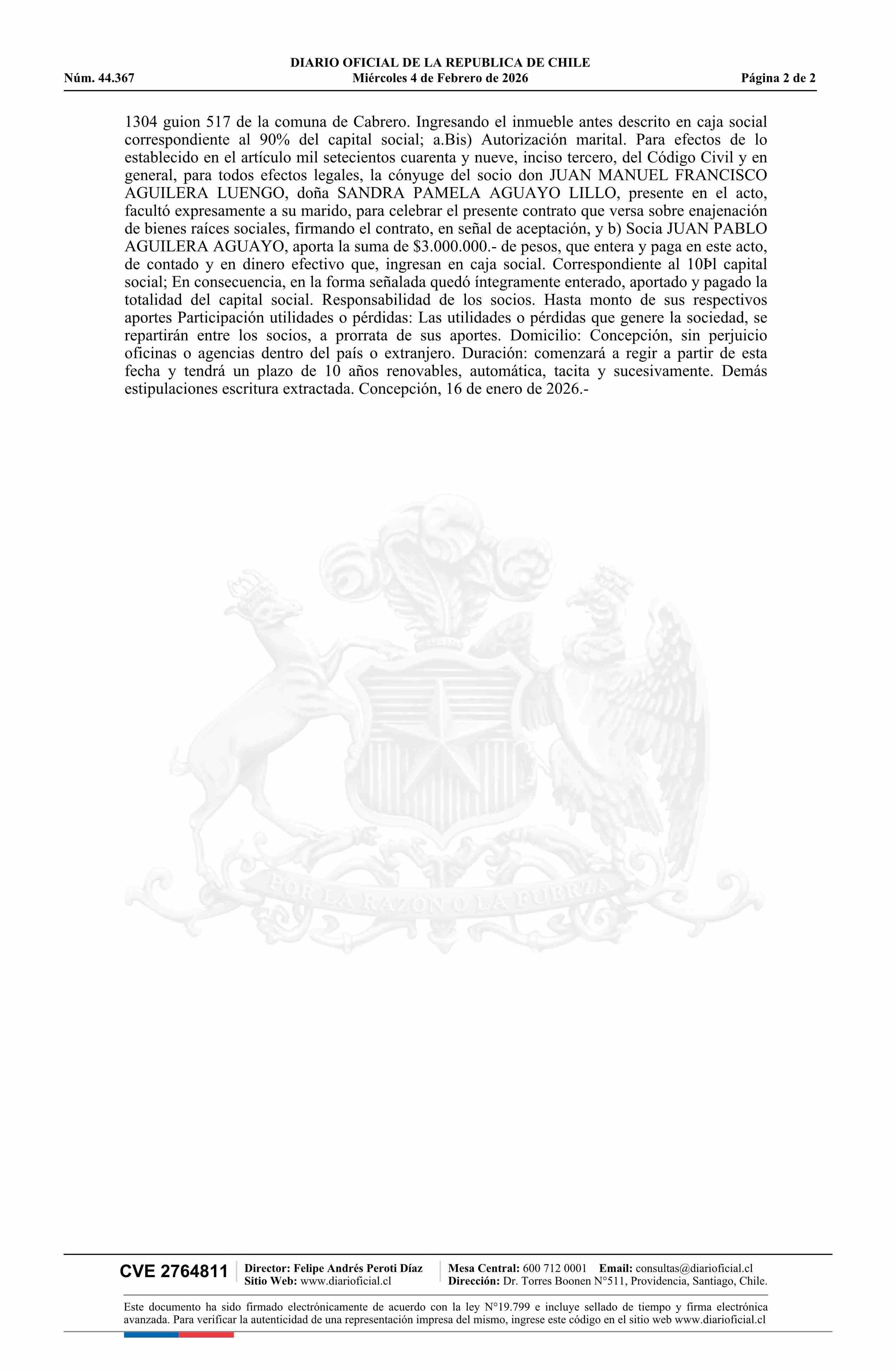 AGRÍCOLA E INVERSIONES VETEK LIMITADA 04-02-2026 Diario Oficial Edición Electrónica |