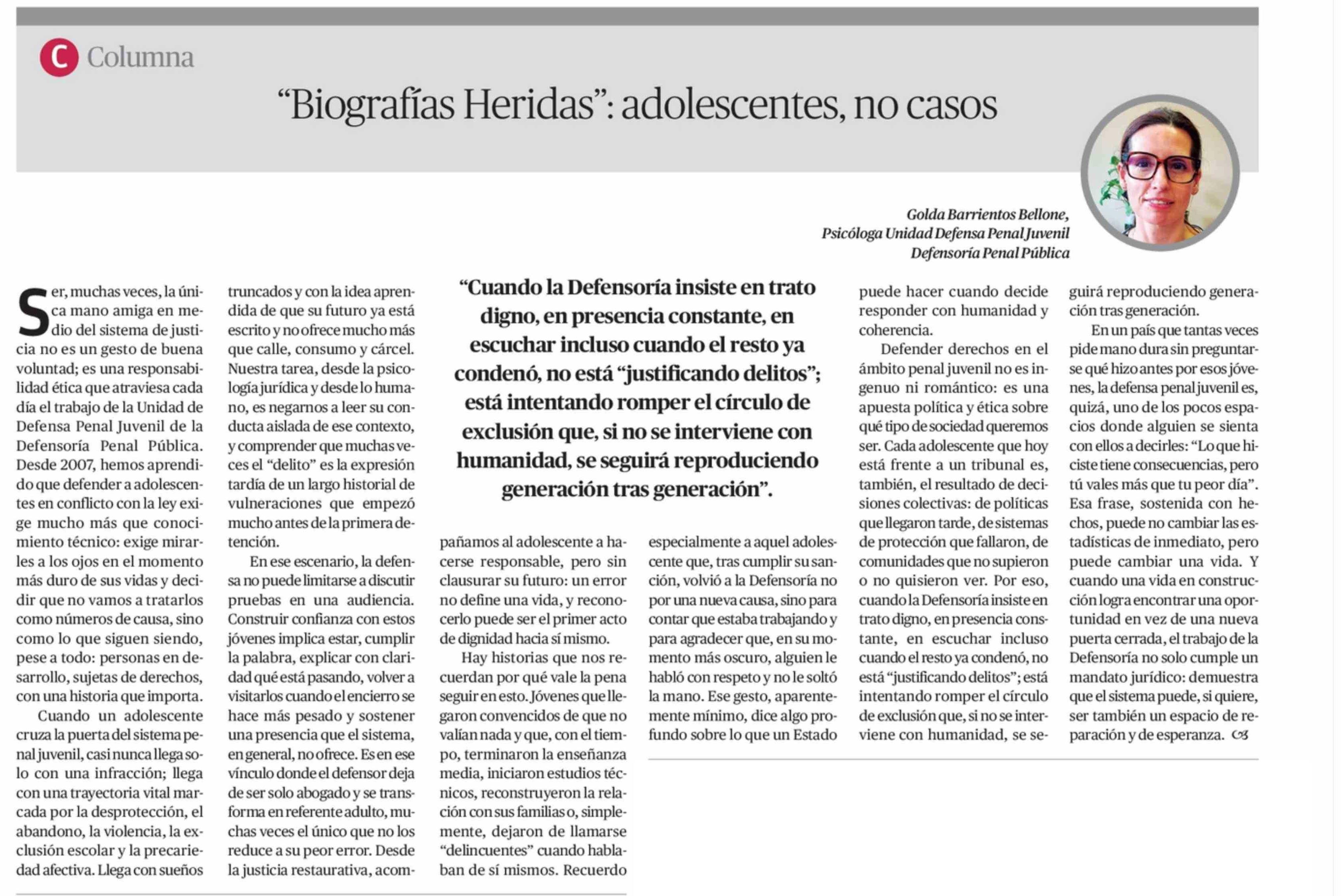 Título: COLUMNAS DE OPINIÓN: “Biografías Heridas”: adolescentes, no casos