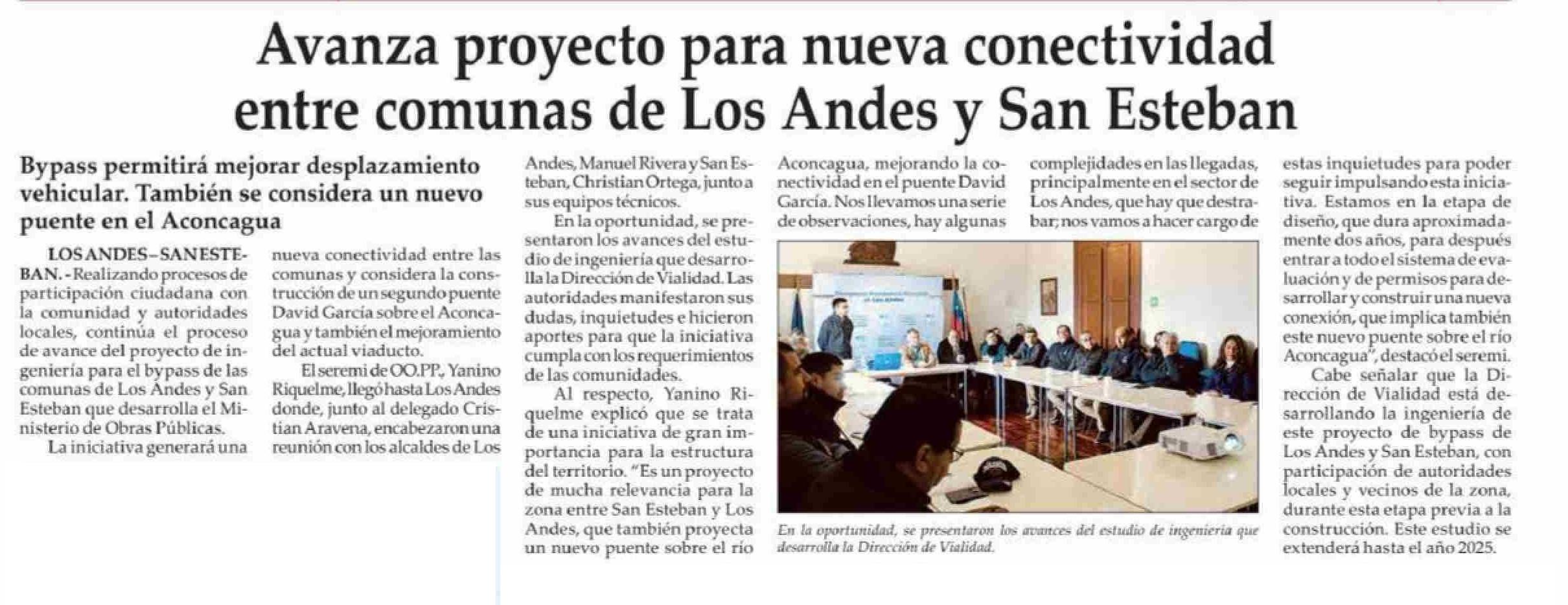 Título: Avanza proyecto para nueva conectividad entre comunas de Los Andes y San Esteban