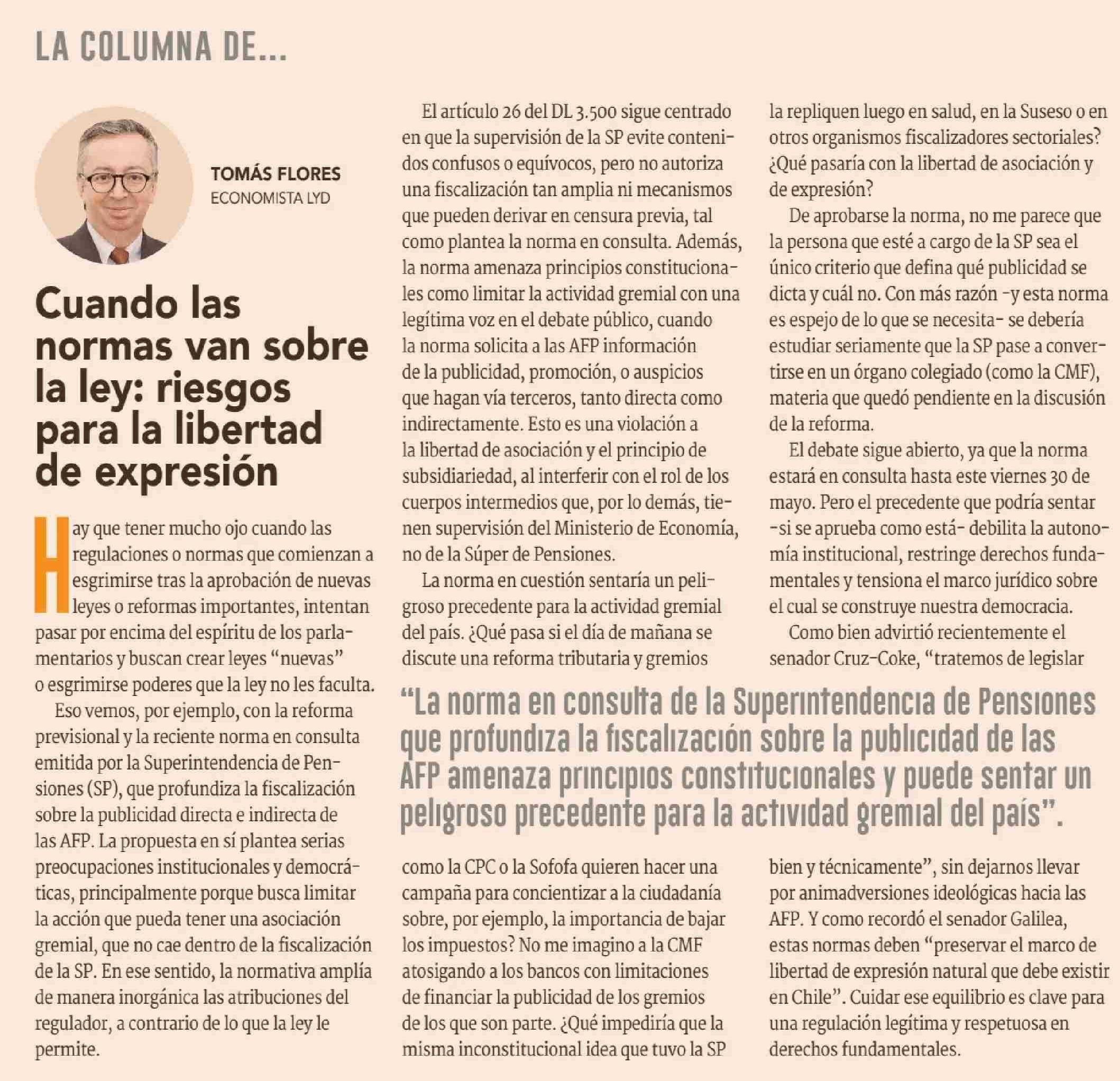 COLUMNAS DE OPINIÓN: Cuando las normas van sobre la ley: riesgos para la libertad de expresión 27-05-2025 Diario Financiero |