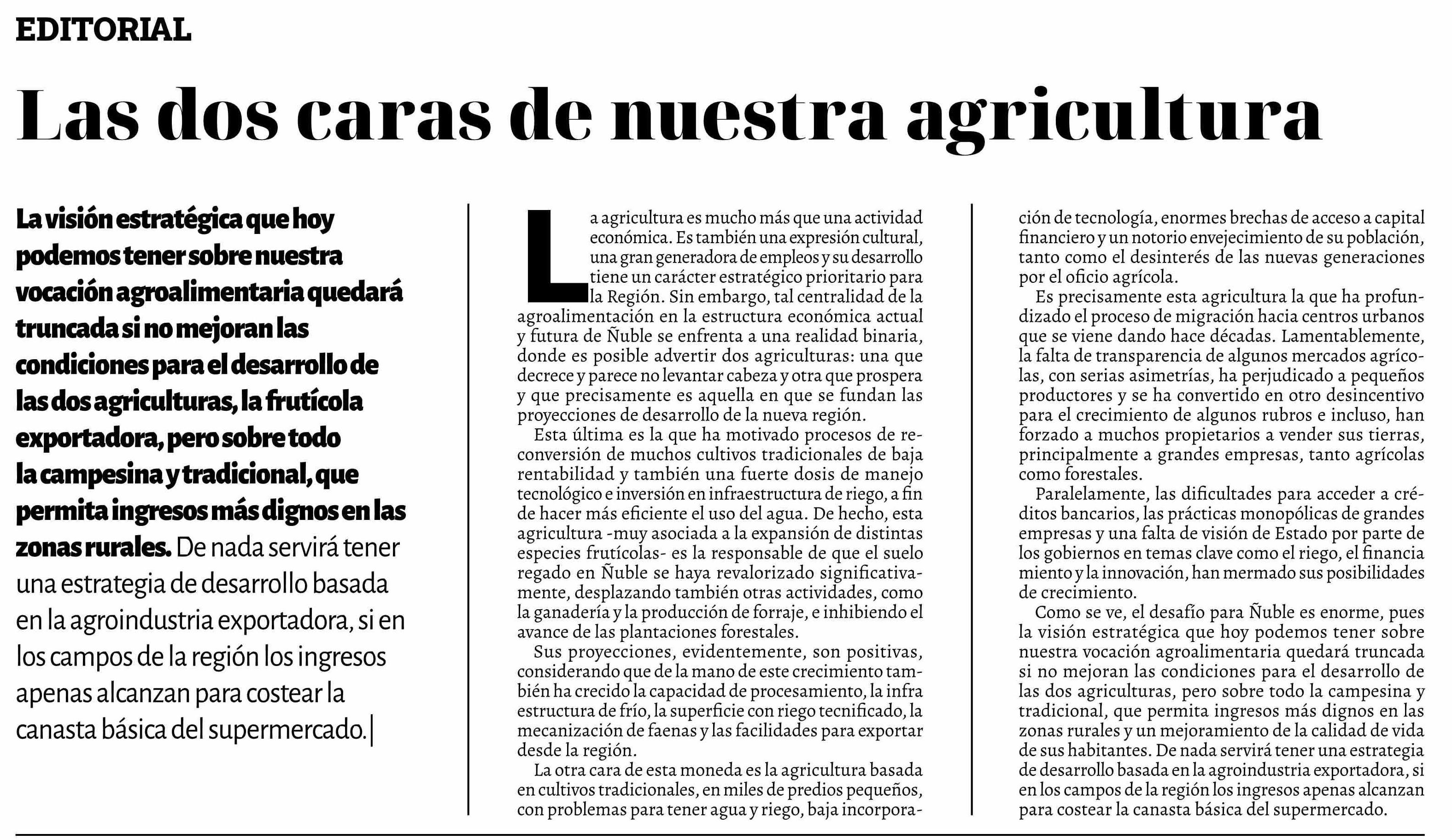 | Título: | Editorial: Las dos caras de nuestra agricultura |