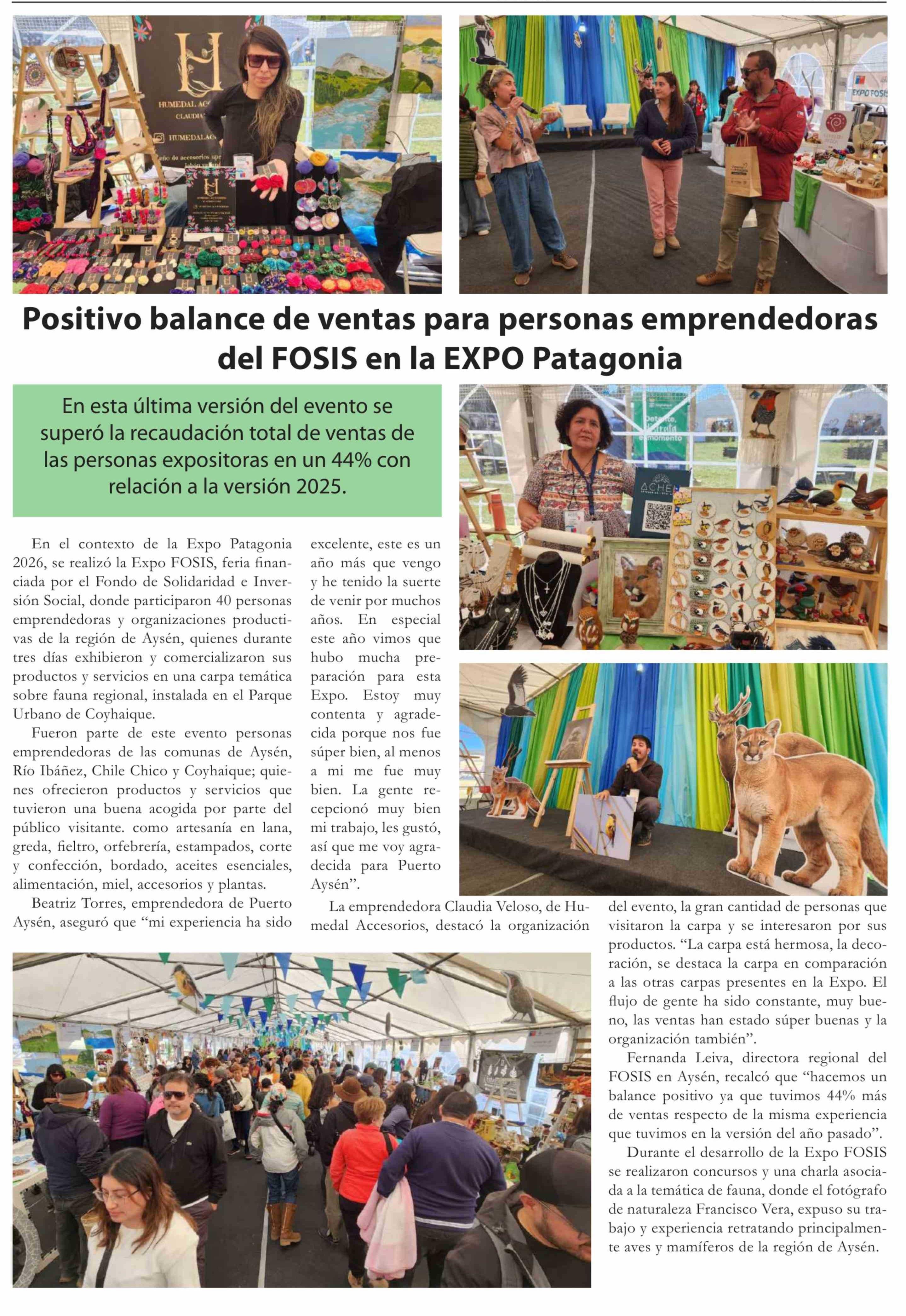 | Título: | Positivo balance de ventas para personas emprendedoras del FOSIS en la EXPO Patagonia |
