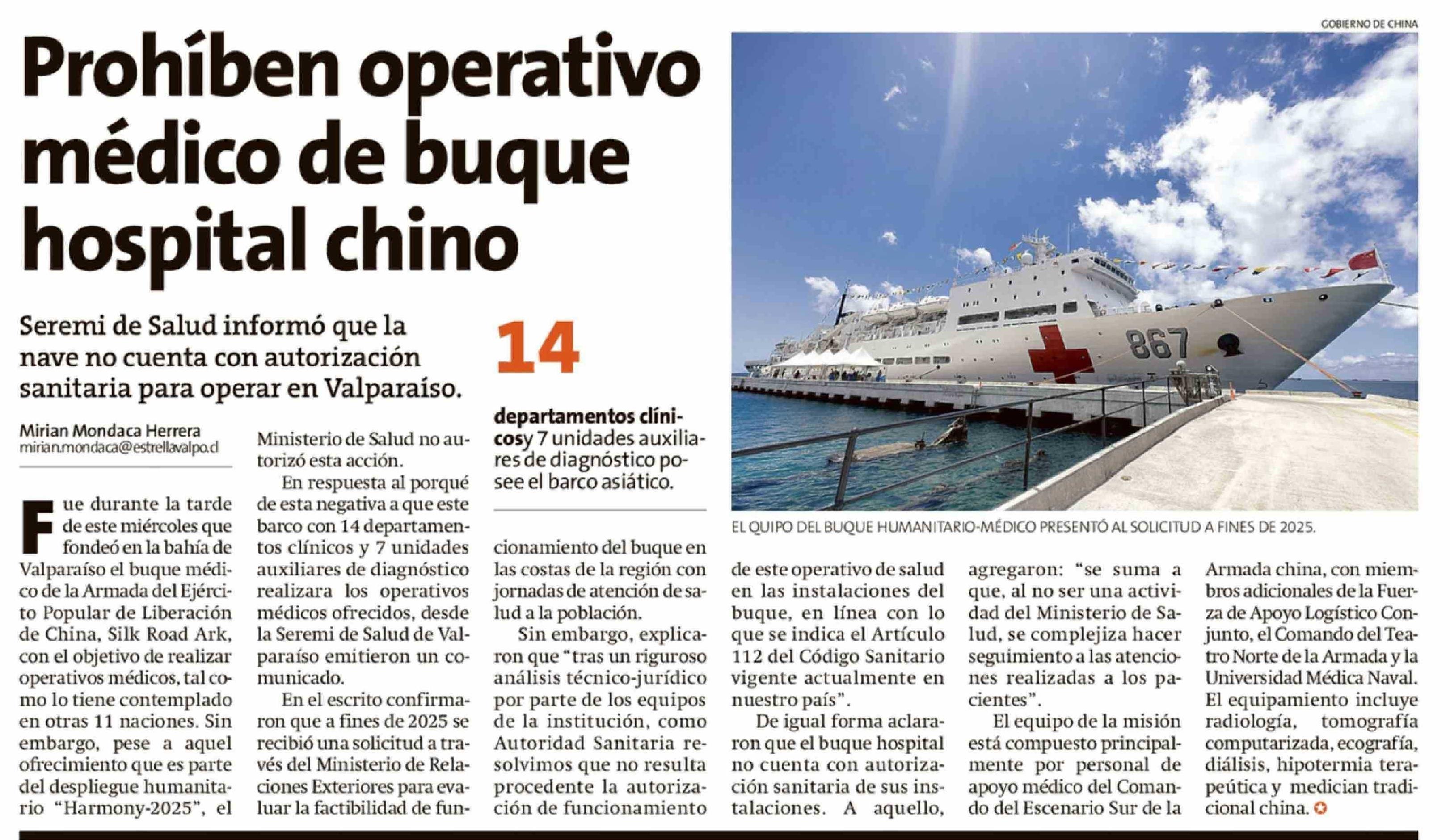 Título: Prohíben operativo médico de buque hospital chino