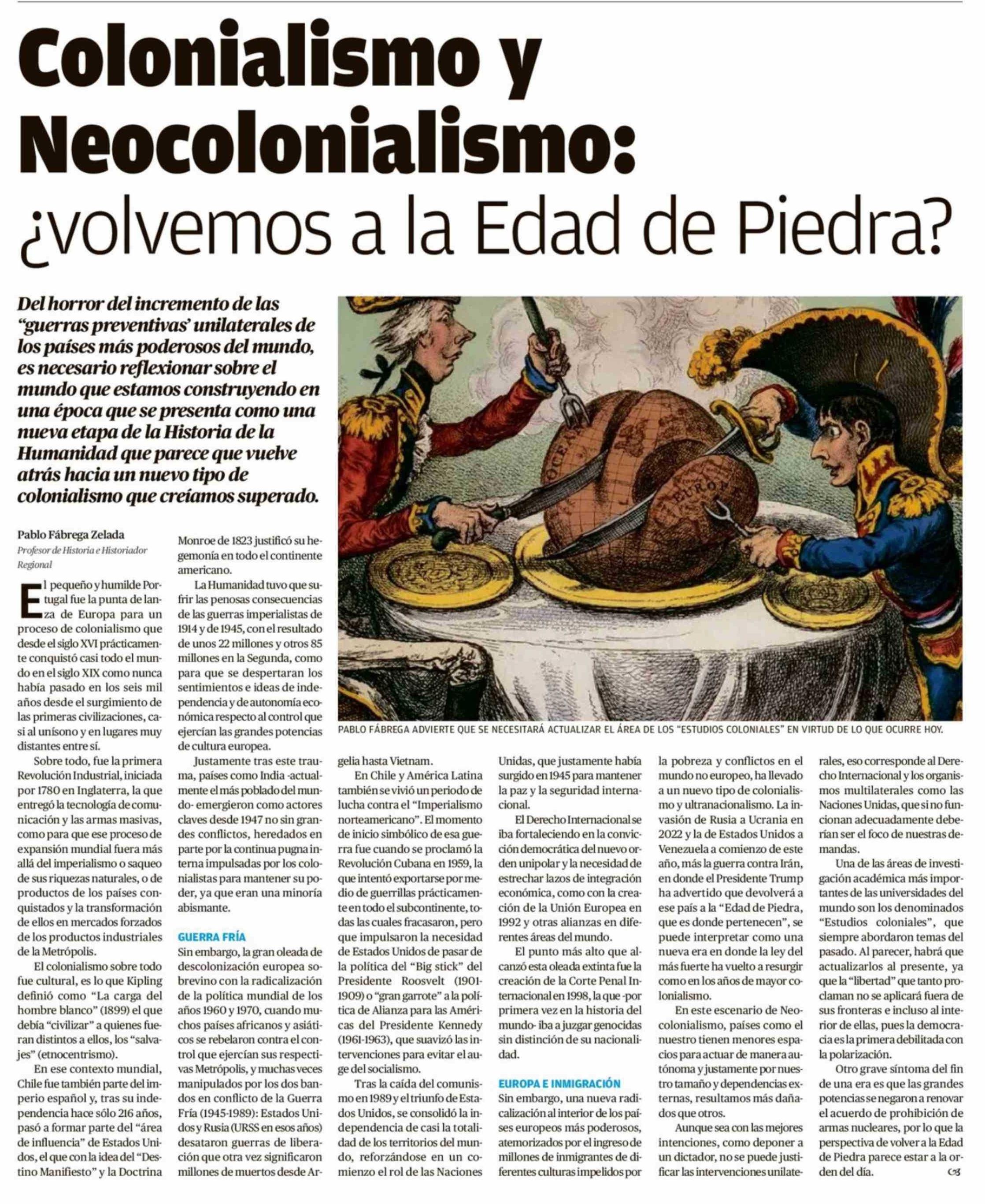 Colonialismo y Neocolonialismo: ¿volvemos a la Edad de Piedra? 12-04-2026 El Austral de Osorno |