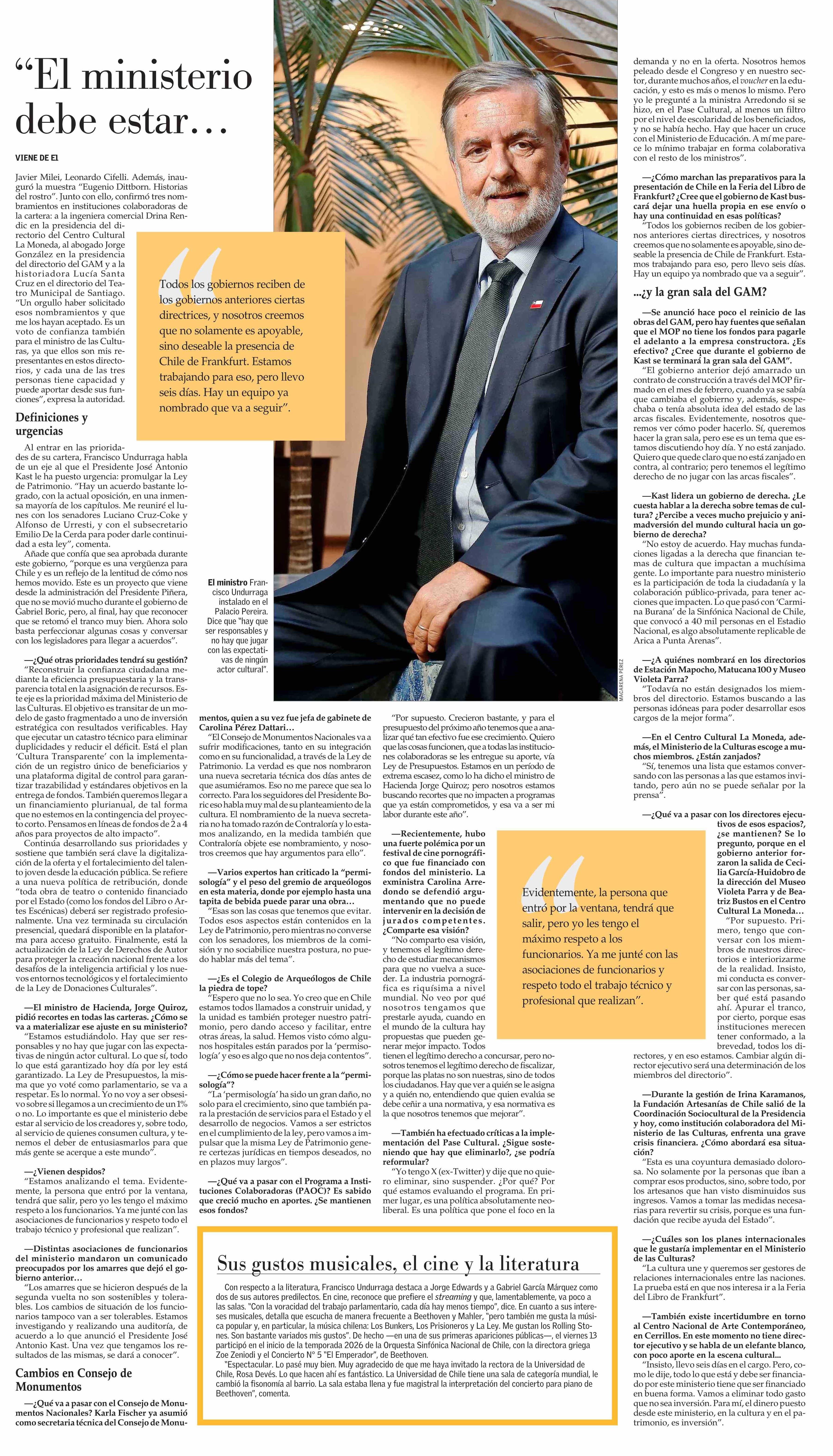 | Título: | FRANCISCO UNDURRAGA: “EL MINISTERIO DEBE ESTAR AL SERVICIO DE LOS CREADORES Y, SOBRE TODO, DE QUIENES CONSUMEN CULTURA” |