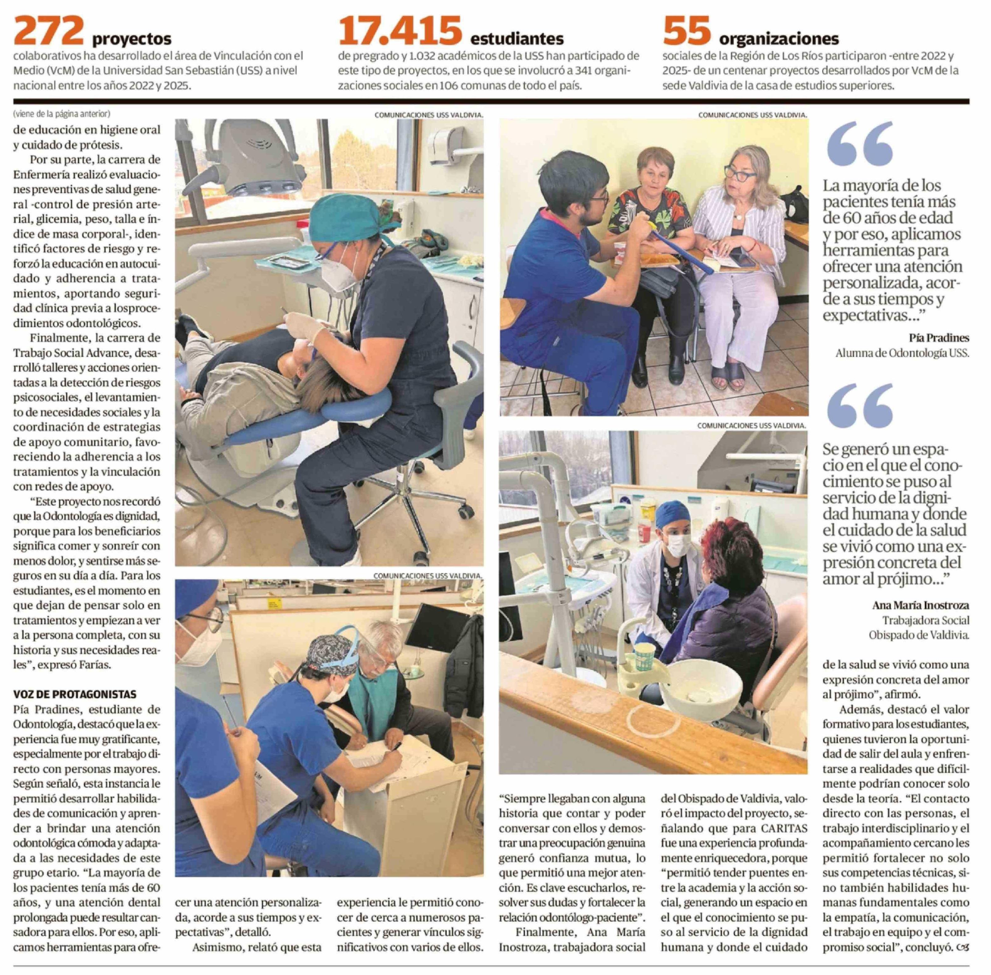 Título: U. San Sebastián impulsa mejora en condiciones de salud bucal de personas mayores junto a Caritas