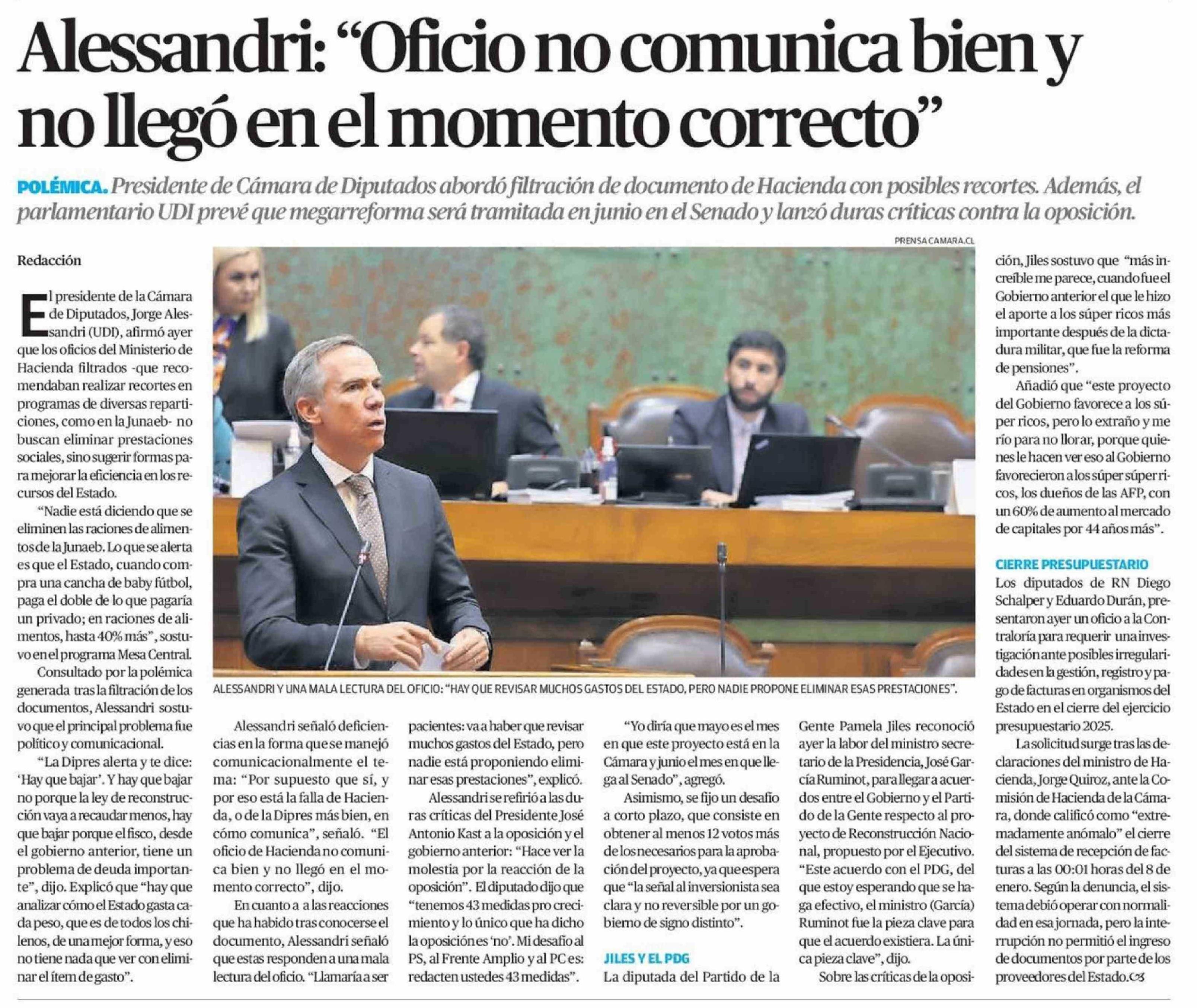 | Título: | Alessandri: "Oficio no comunica bien y no llegó en el momento correcto" |
