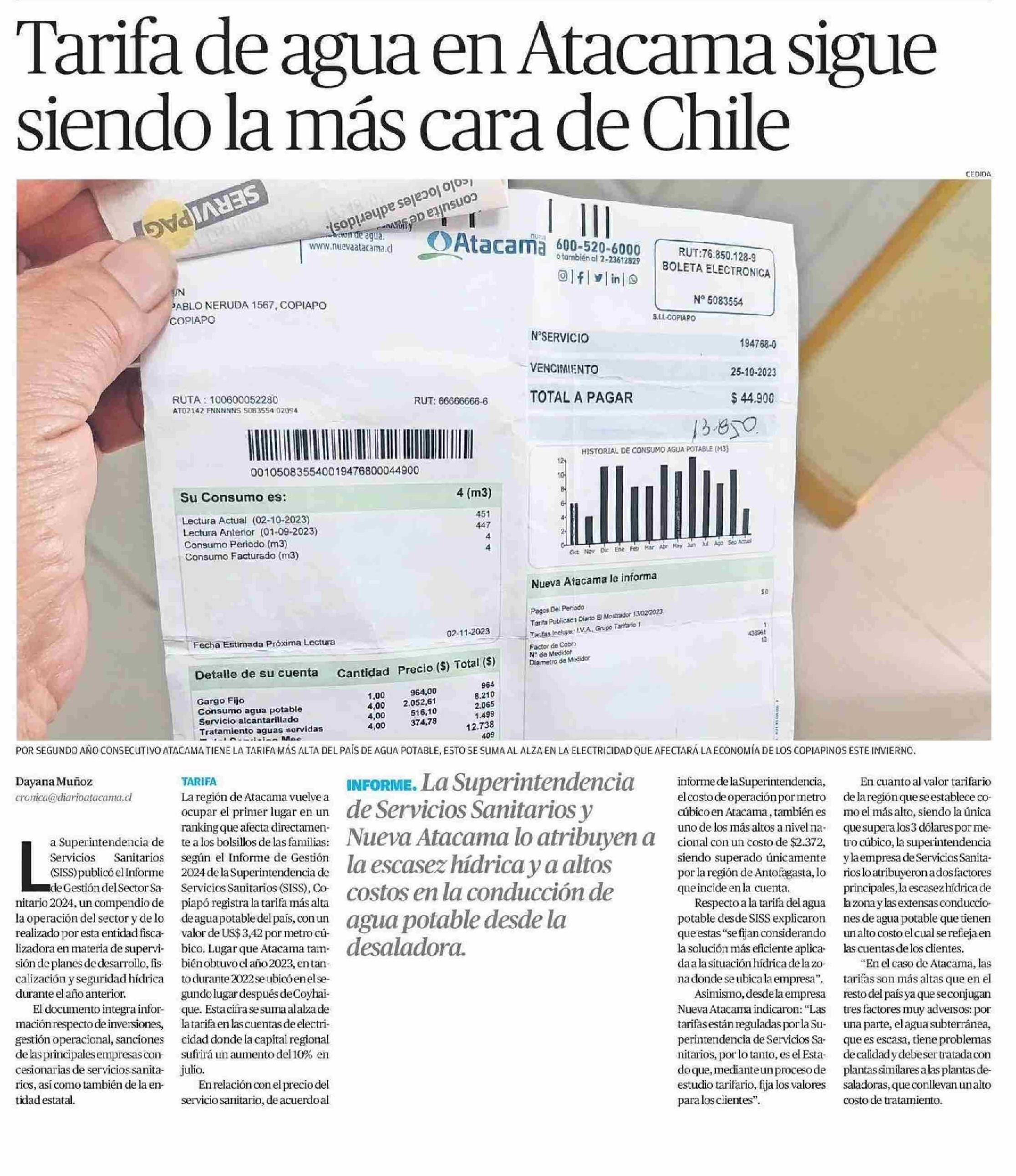 Tarifa de agua en Atacama sigue siendo la más cara de Chile 03-06-2025 El Diario de Atacama |