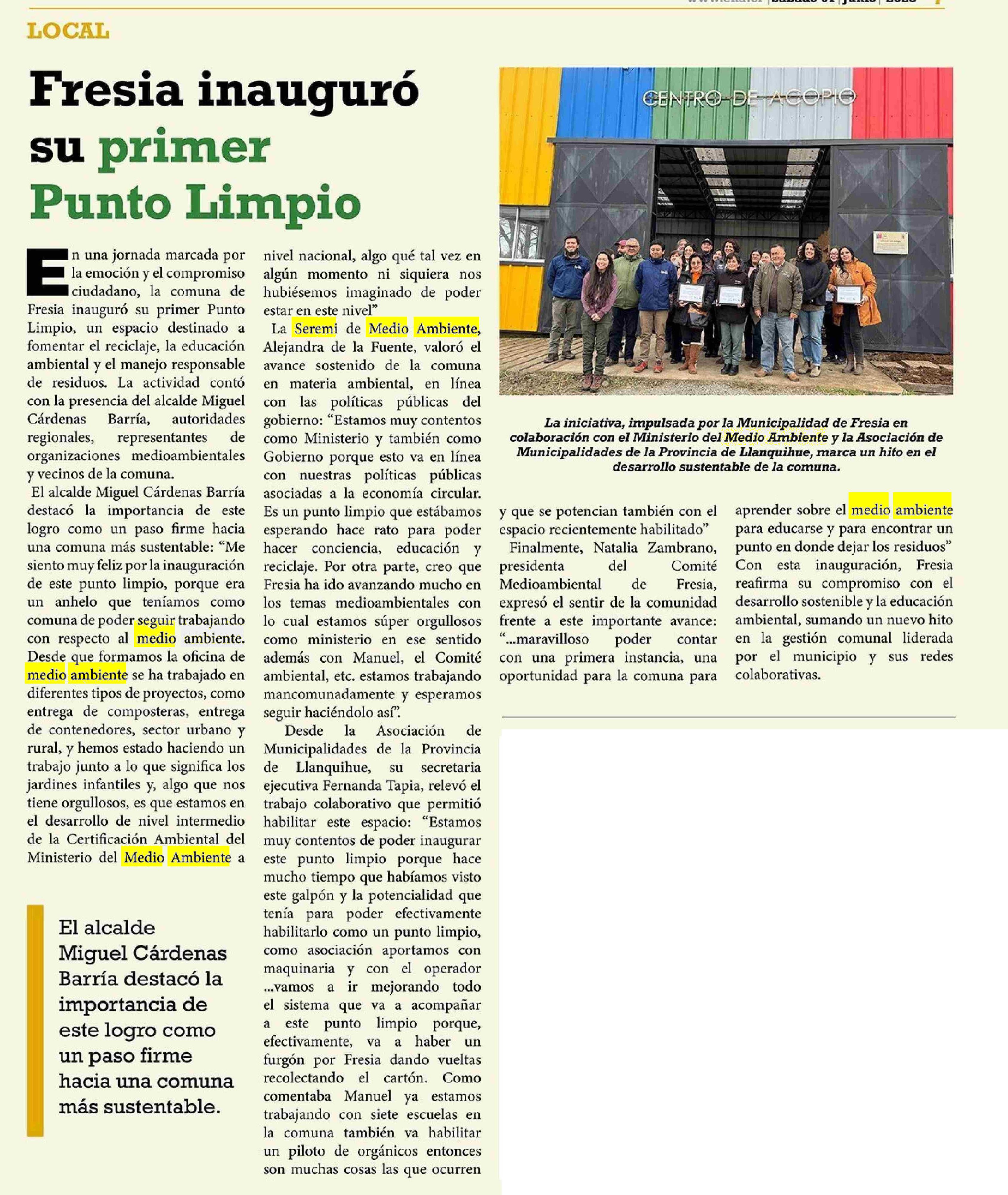 Presia inauguró su primer Punto Limpio 07-06-2025 El Heraldo Austral |