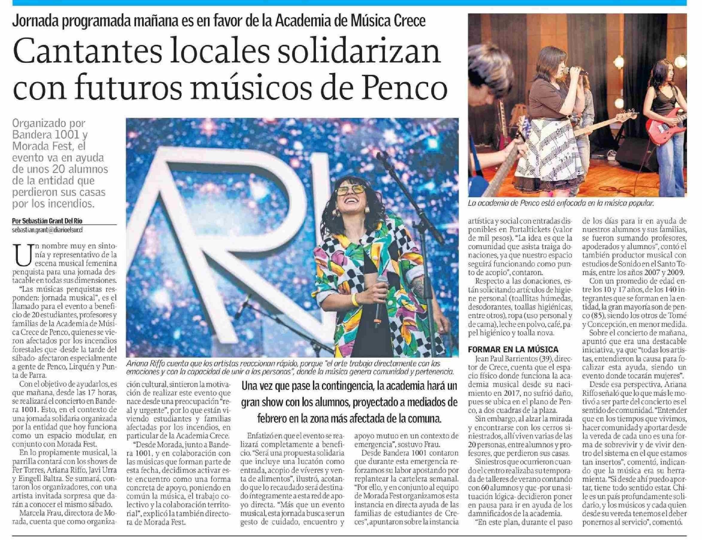 Cantantes locales solidarizan con futuros músicos de Penco 23-01-2026 El Sur |