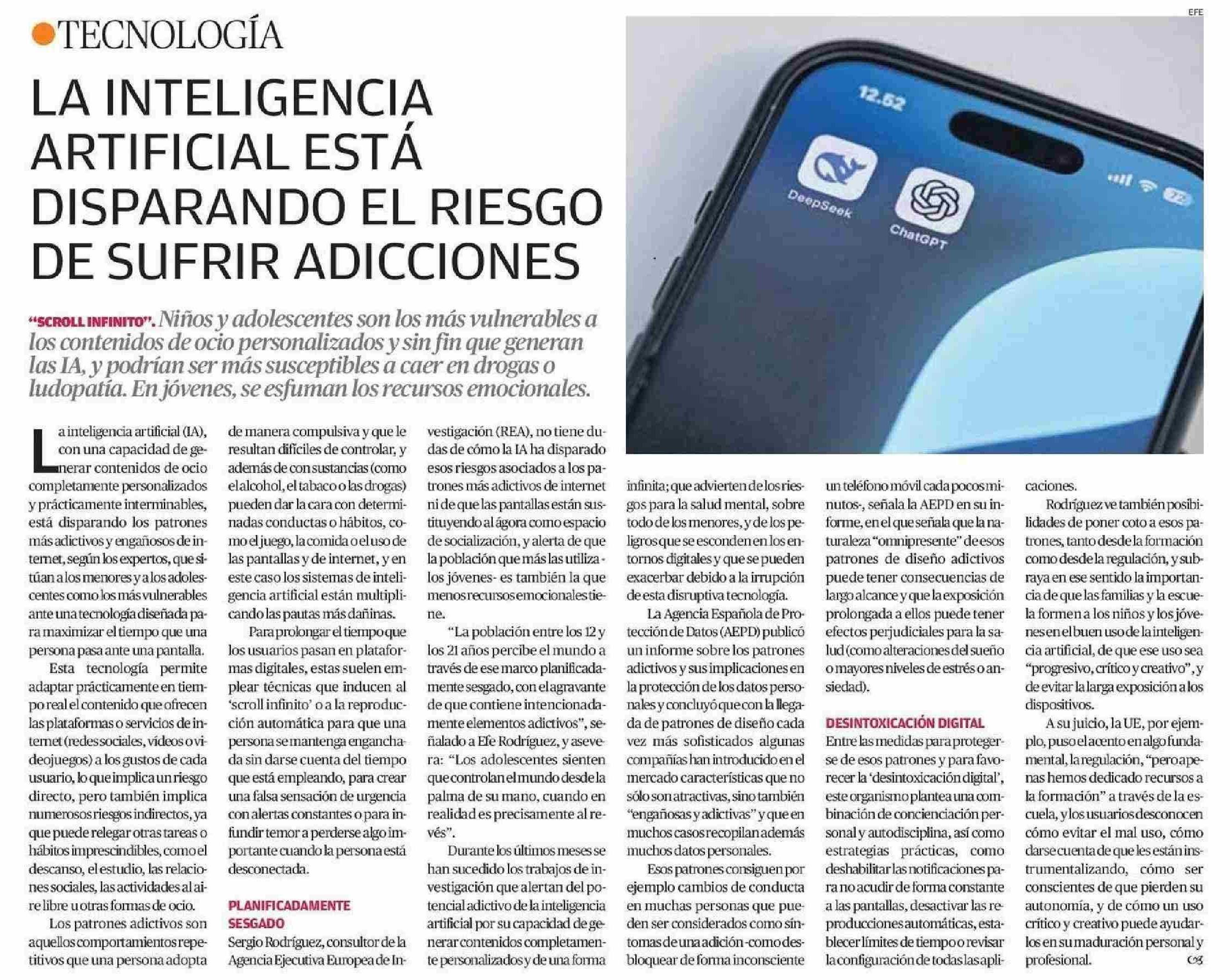 | Título: | LA INTELIGENCIA ARTIFICIAL ESTA DISPARANDO EL RIESGO DE SUFRIR ADICCIONES |