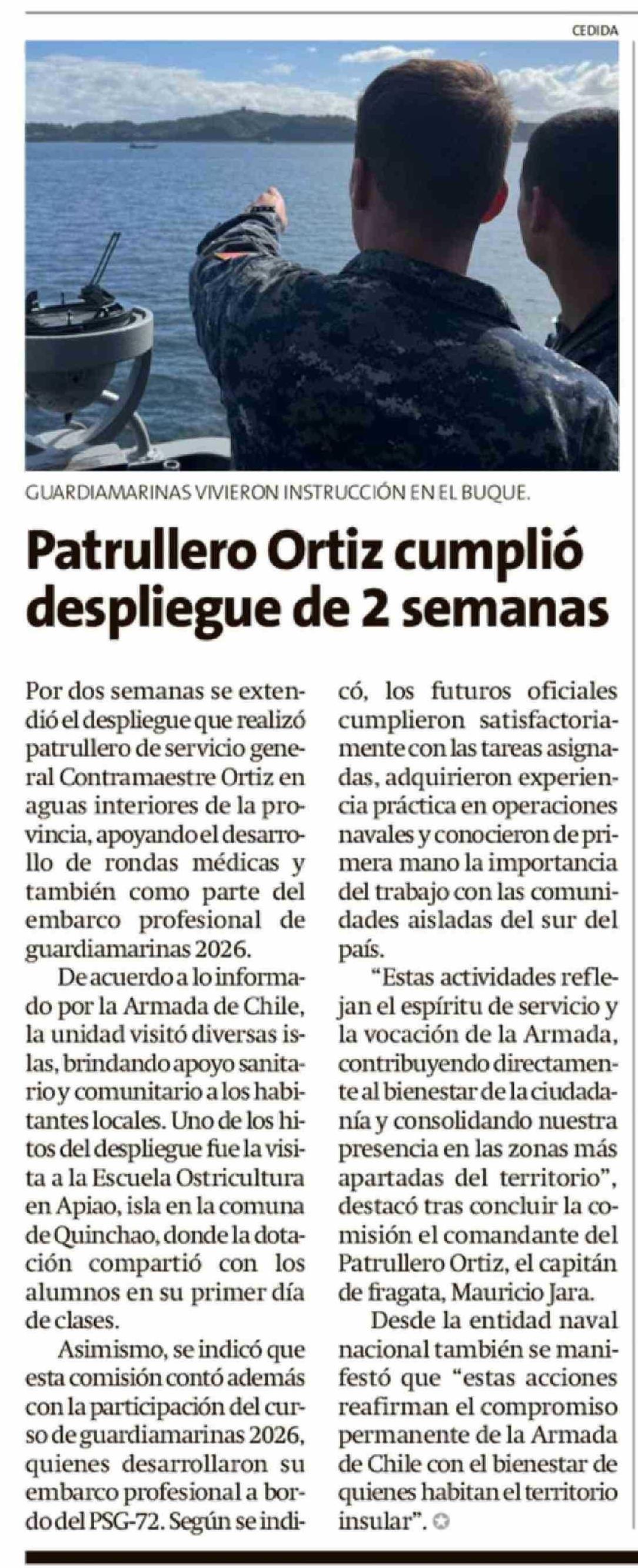 Patrullero Ortiz cumplió despliegue de 2 semanas 23-03-2026 La Estrella de Chiloé |