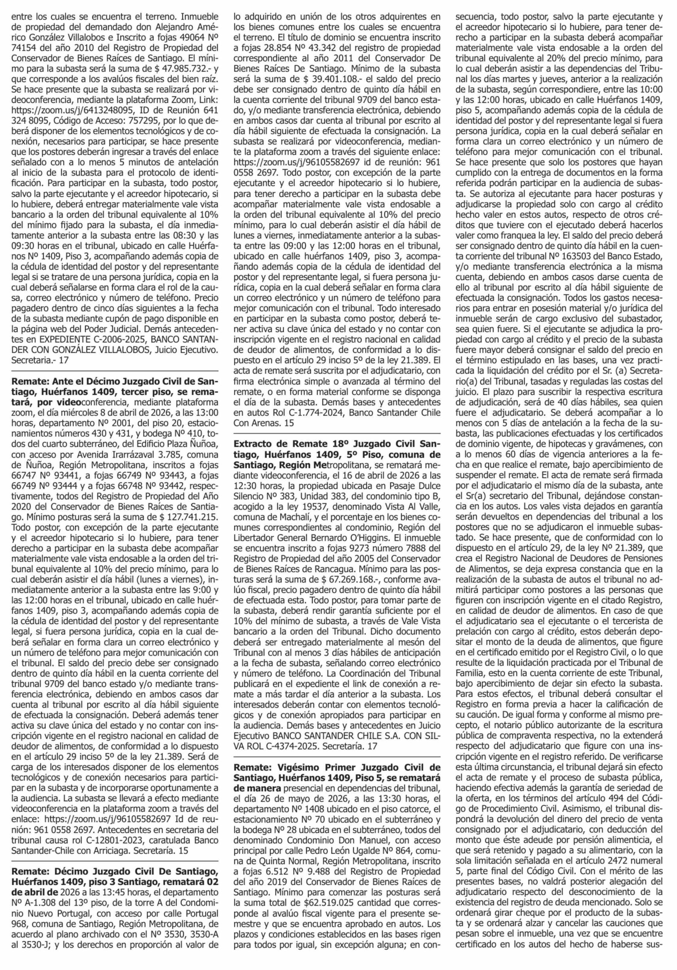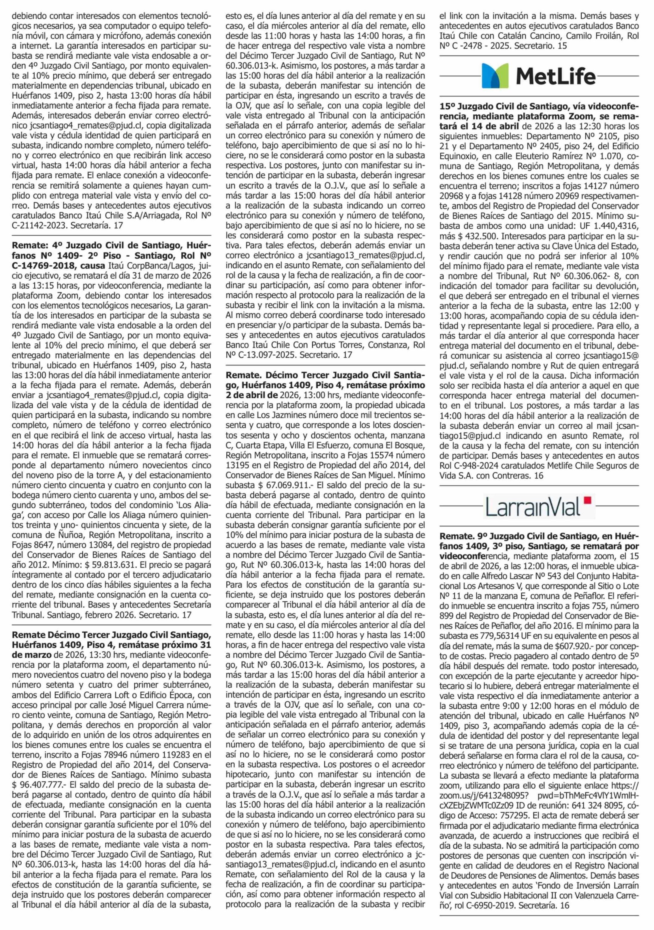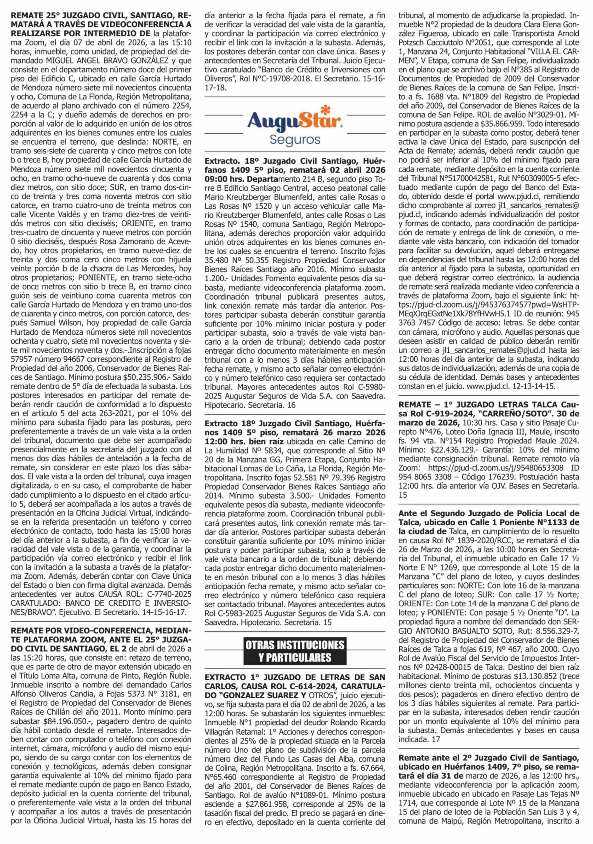 | Fecha: | 15-03-2026 | Sector: | Remates | Región: | Región Metropolitana de Santiago |