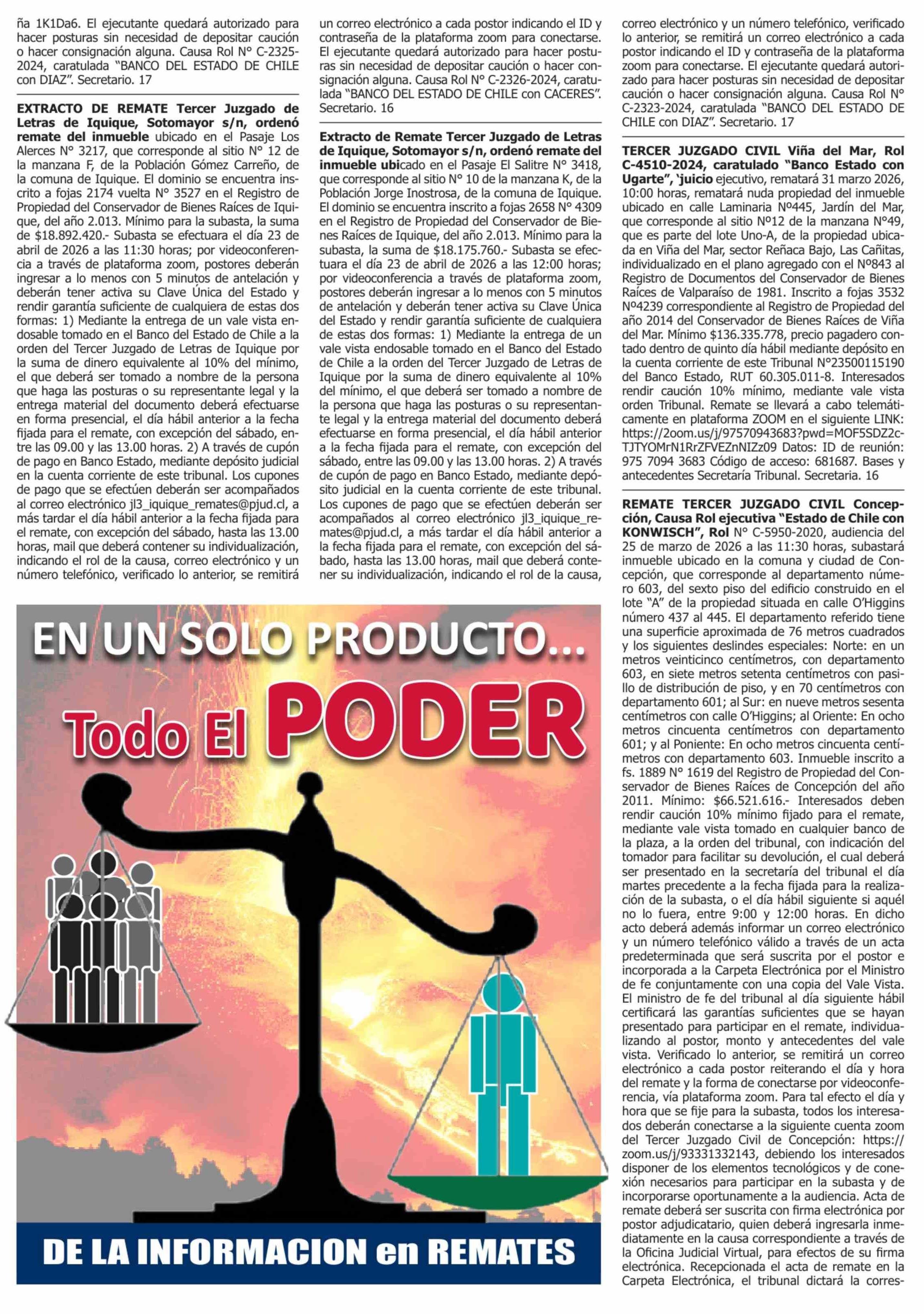 Remates: COMPENDIO REMATES de PROPIEDADES (NACIONAL) 15-03-2026 P&L Públicos y Legales |