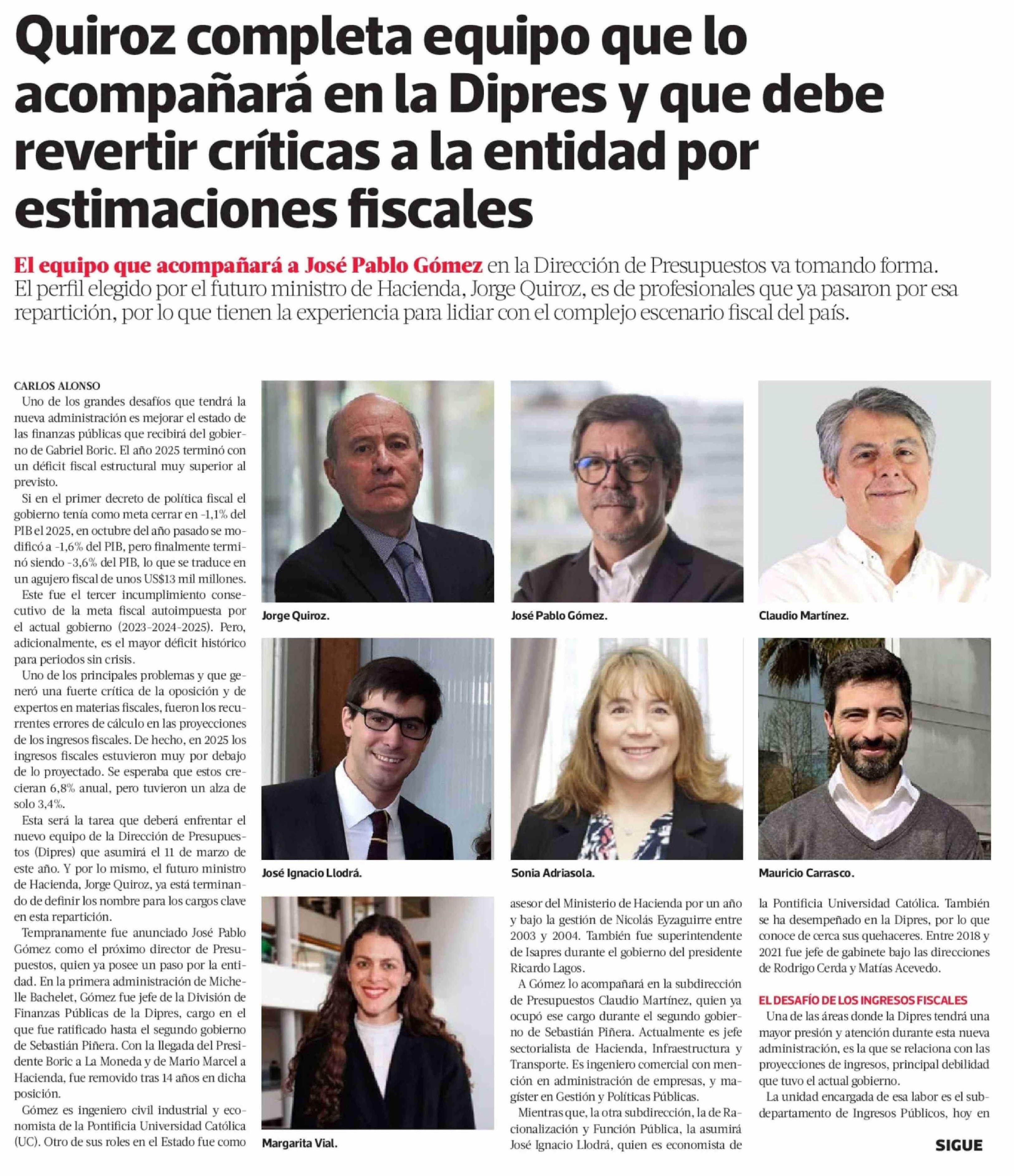 Título: Quiroz completa equipo que lo acompañará en la Dipres y que debe revertir críticas a la entidad por estimaciones fiscales