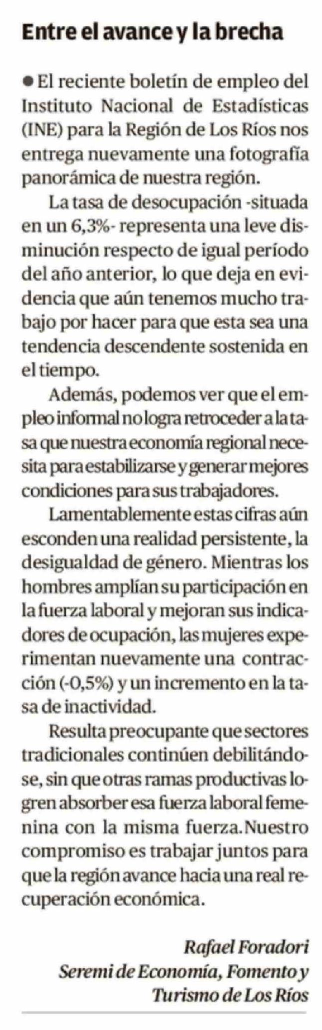 Cartas: Entre el avance y la brecha 07-04-2026 Diario Austral Región de Los Ríos |