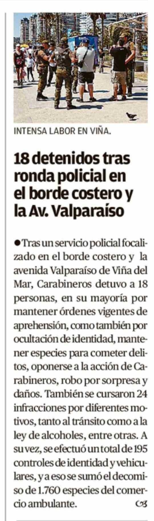 18 Detenidos tras ronda policial en el borde costero y la Av. Valparaíso 06-02-2026 El Mercurio de Valparaíso |