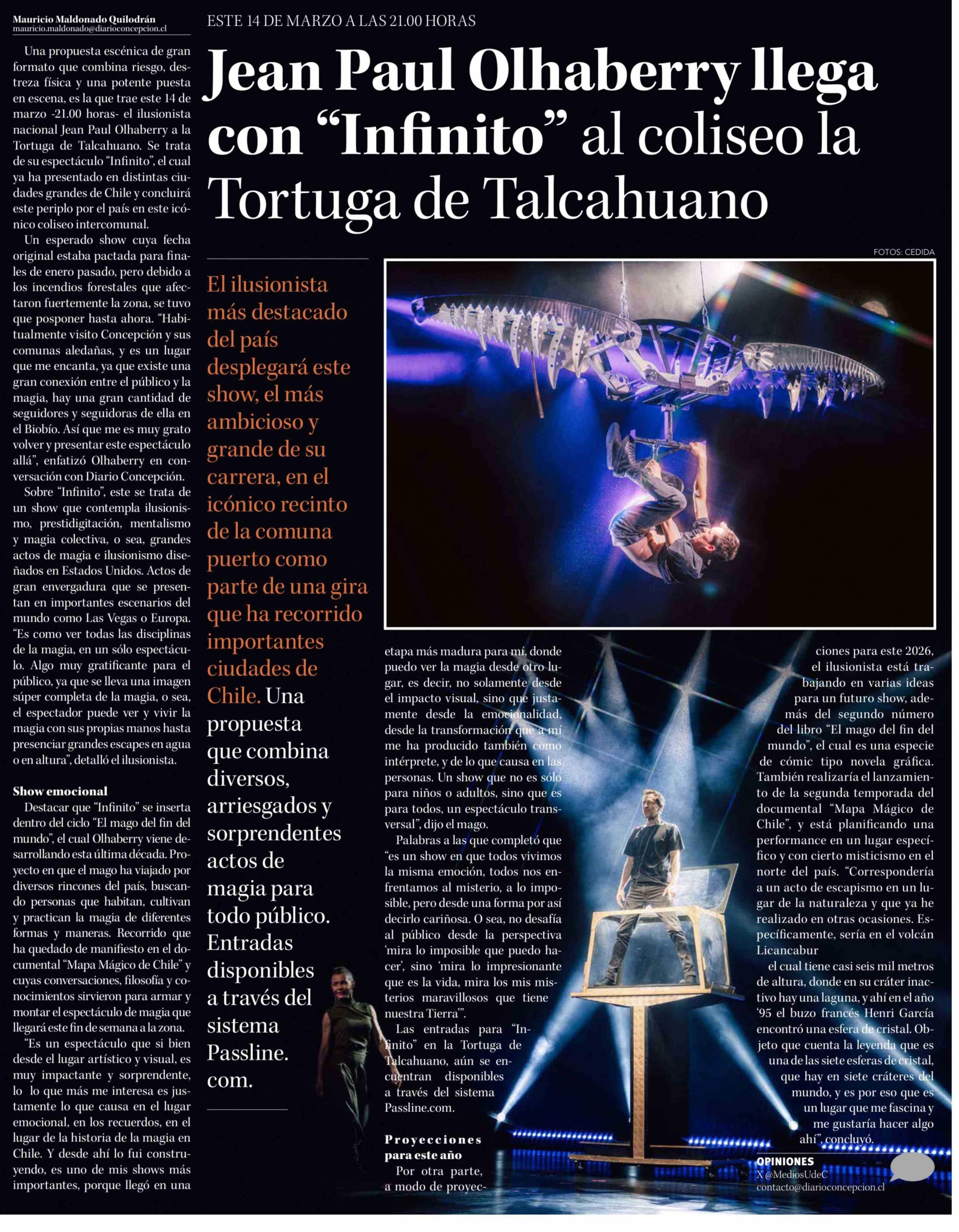 Jean Paul Olhaberry llega con "Infinito" al coliseo la Tortuga de Talcahuano 12-03-2026 Diario Concepción |