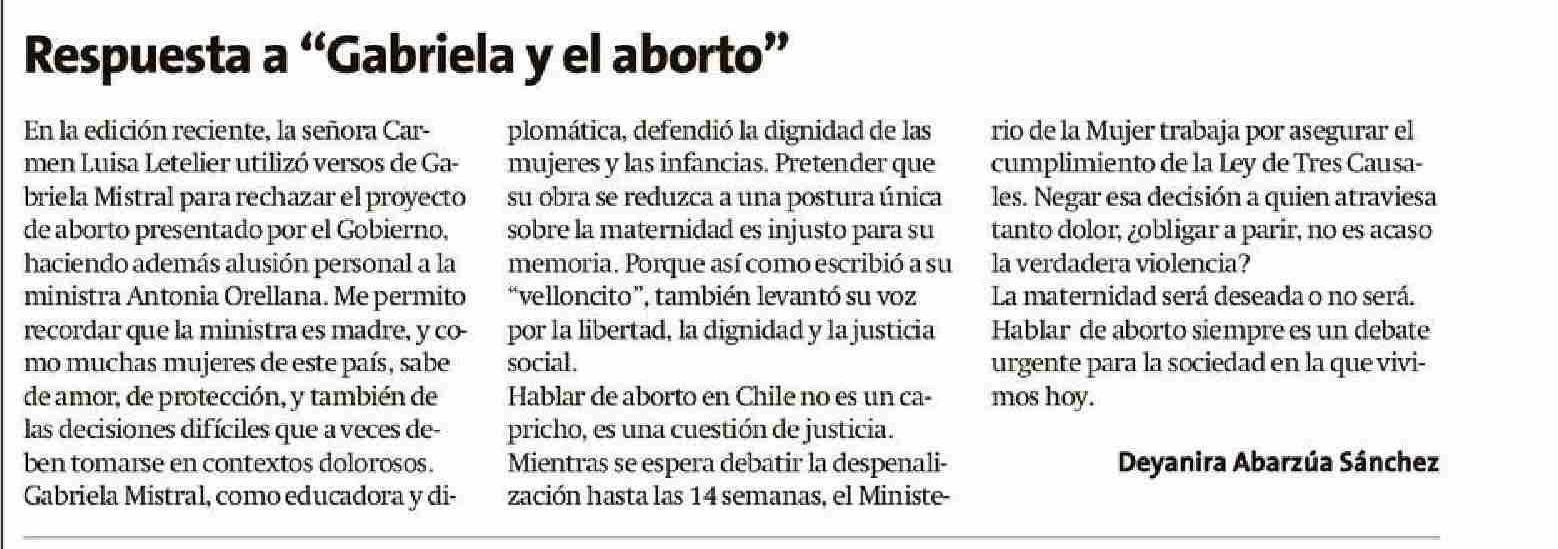 | Título: | CARTAS: Respuesta a “Gabriela y el aborto” |