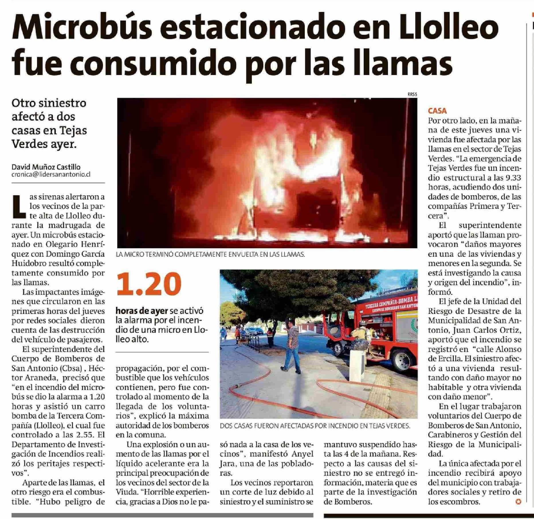 | Título: | Microbús estacionado en Llolleo fue consumido por las llamas |