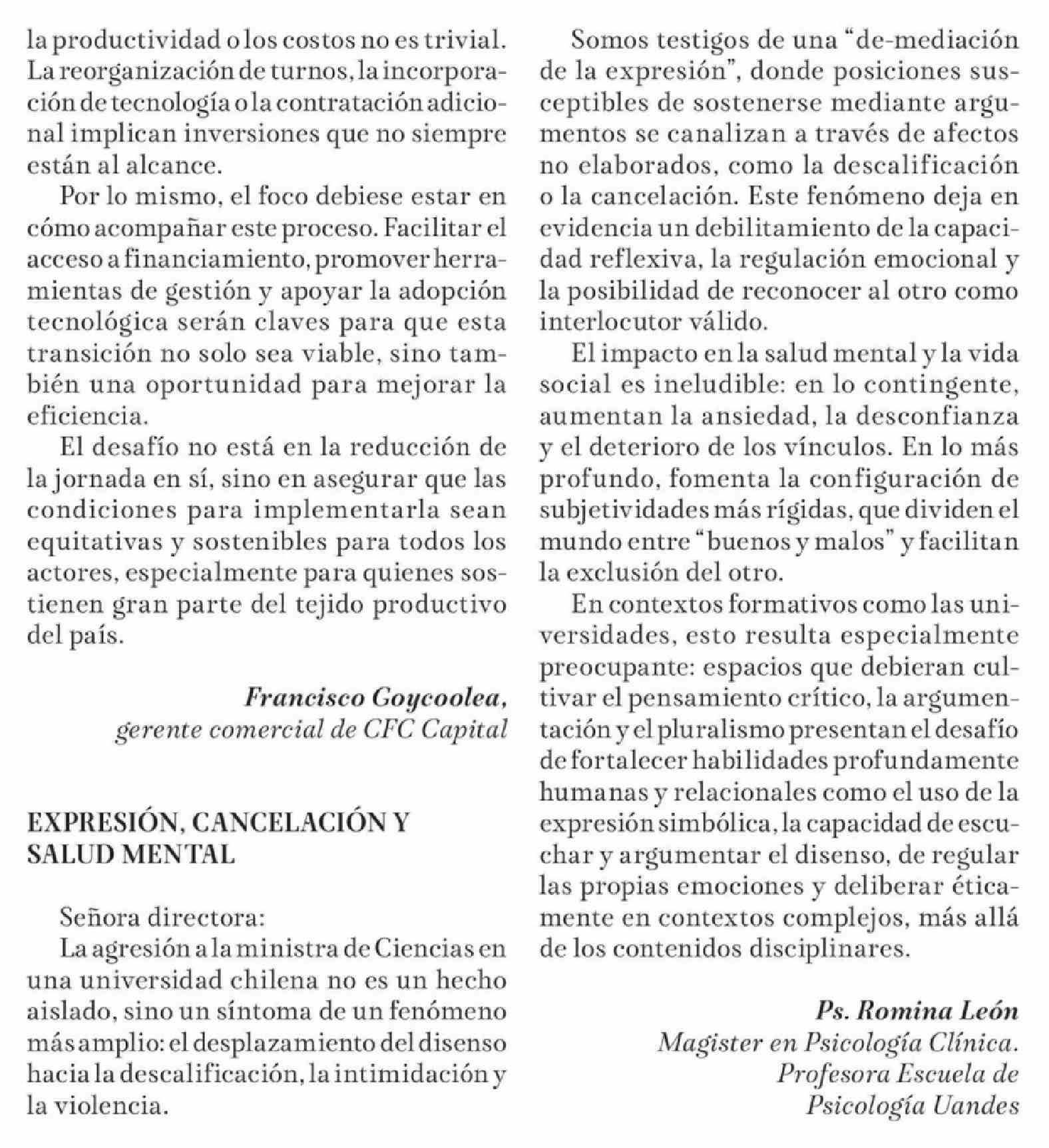 Cartas: EXPRESIÓN, CANCELACIÓN Y SALUD MENTAL 15-04-2026 La Tribuna |