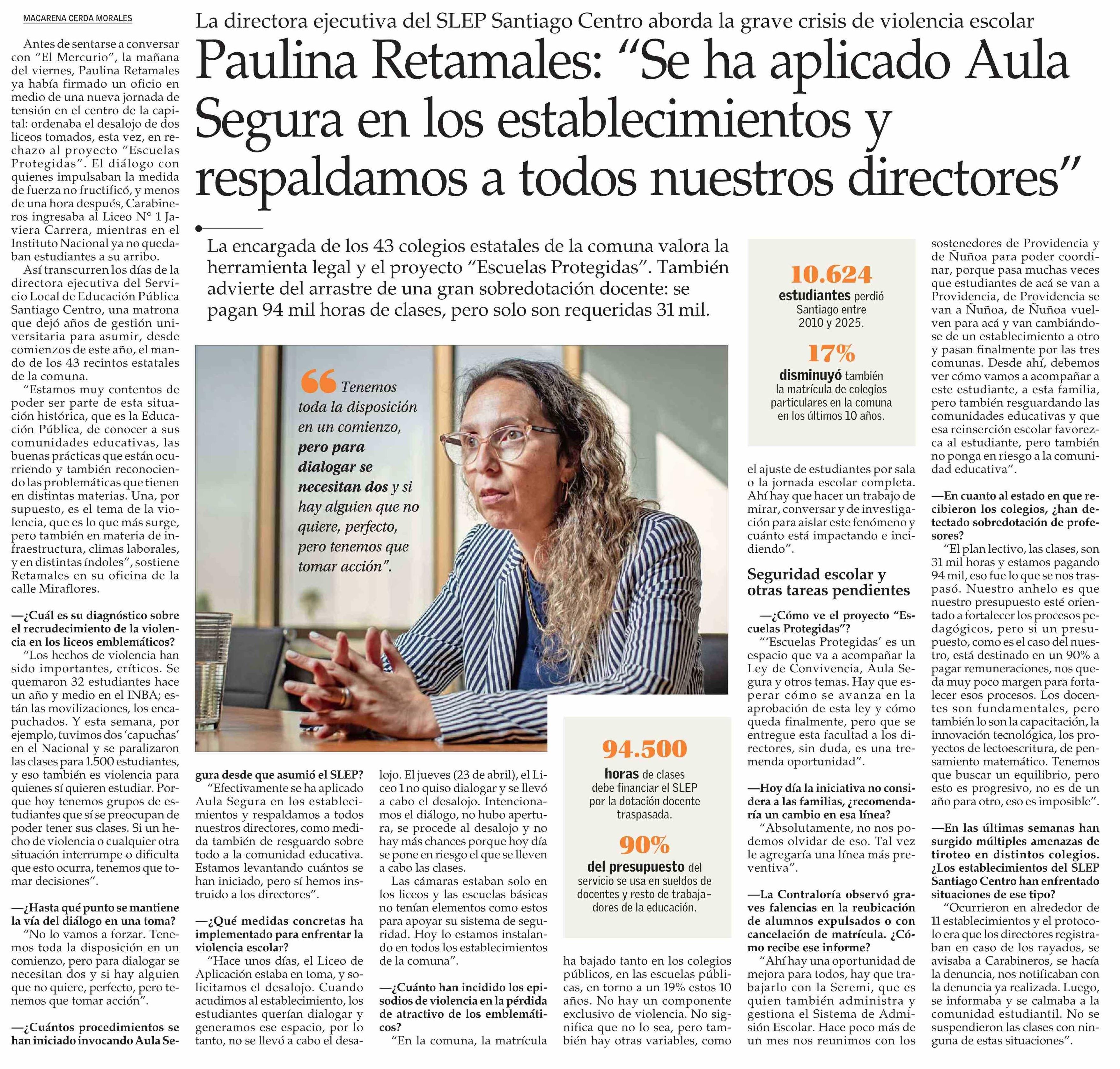 Título: Paulina Retamales: “Se ha aplicado Aula Segura en los establecimientos y respaldamos a todos nuestros directores”