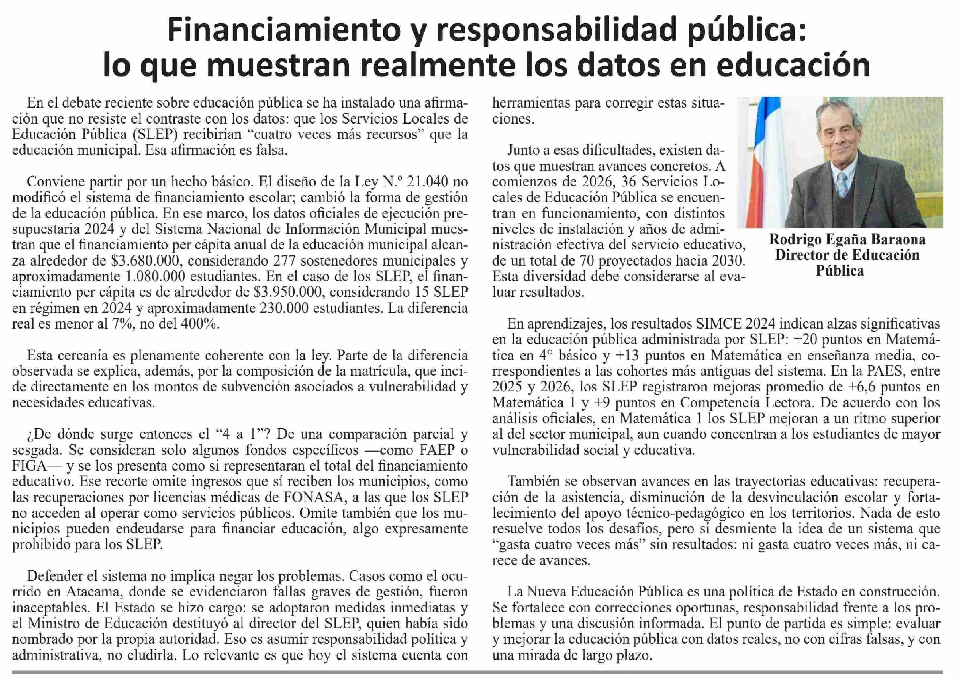 Columnas de Opinión: Financiamiento y responsabilidad pública: lo que muestran realmente los datos en educación 17-01-2026 El Heraldo |