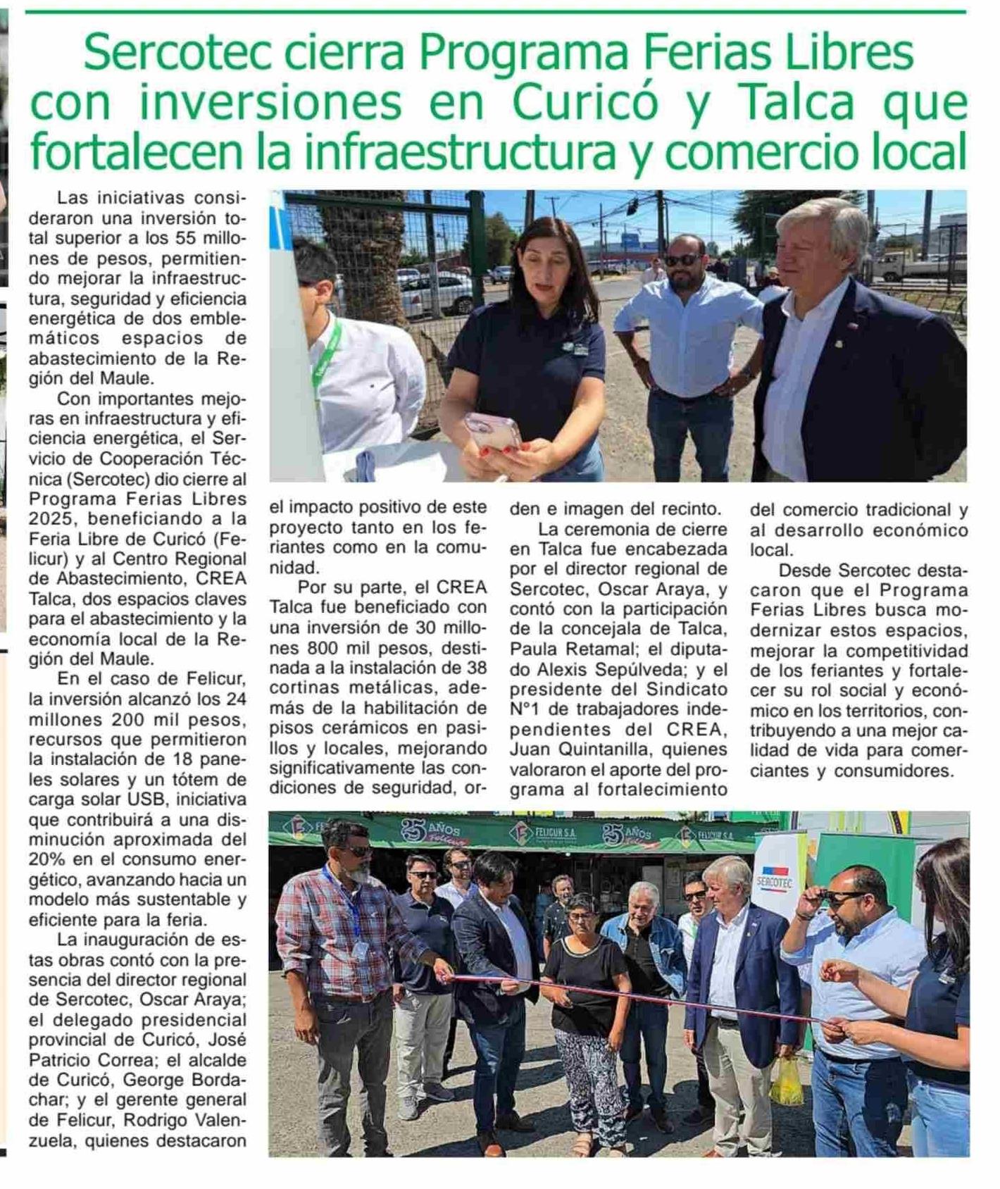 Sercotec cierra Programa Ferias Libres con inversiones en Curicó y Talca que fortalecen la infraestructura y comercio local 18-01-2026 Maule Hoy |