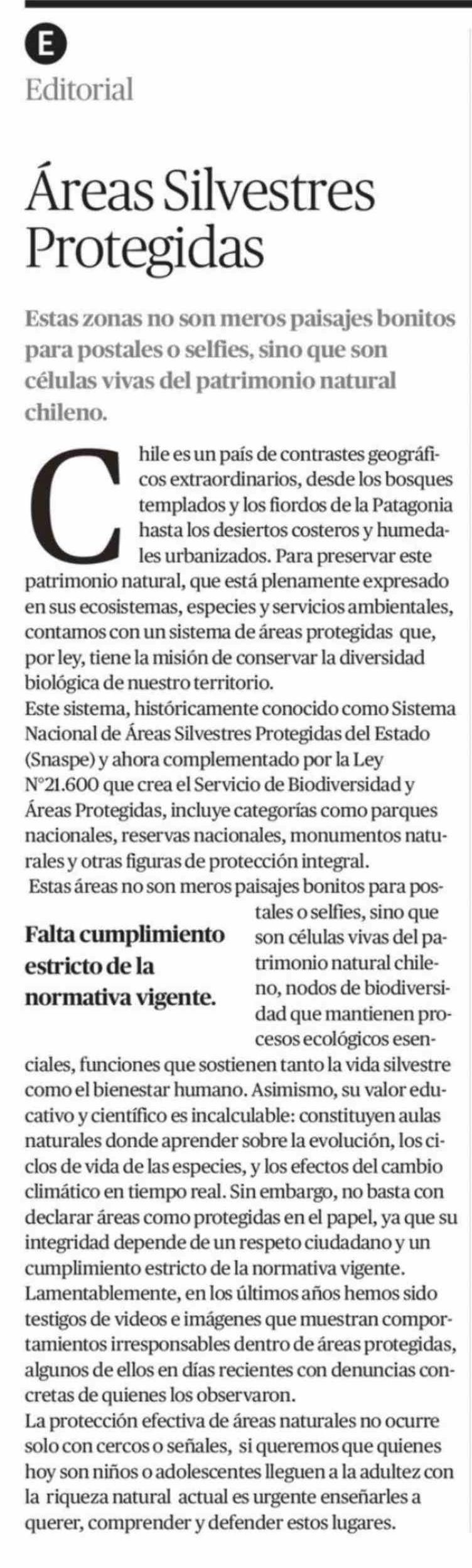 Editorial: Áreas Silvestres Protegidas 15-02-2026 El Diario de Atacama |