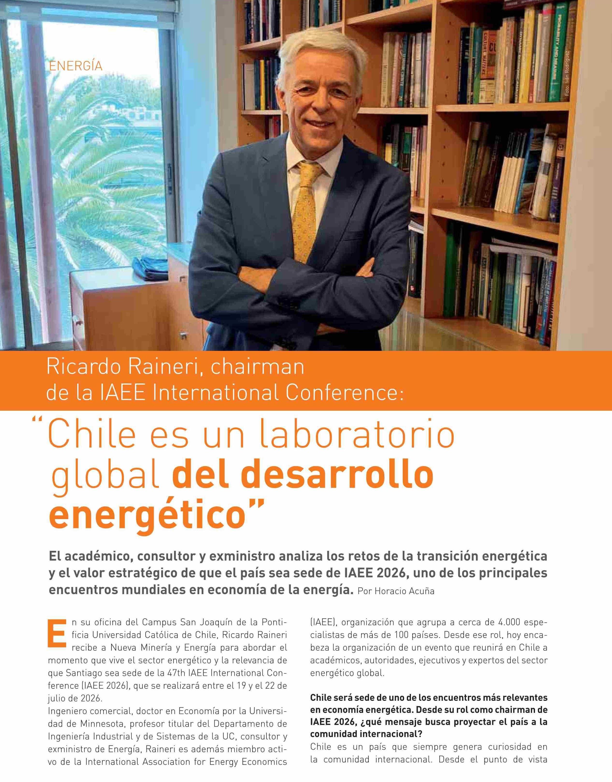 “Chile es un laboratorio global del desarrollo energético” 10-03-2026 Revista Nueva Minería & Energía |