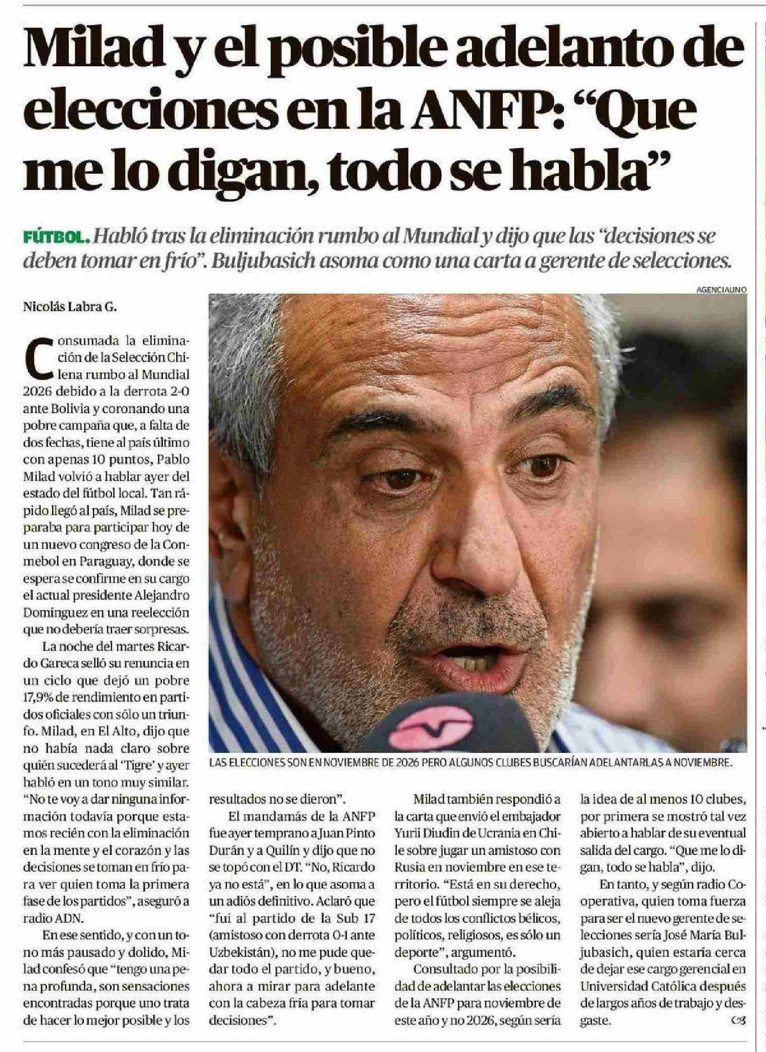 Título: Milad y el posible adelanto de elecciones en la ANFP: "Que me lo digan, todo se habla"