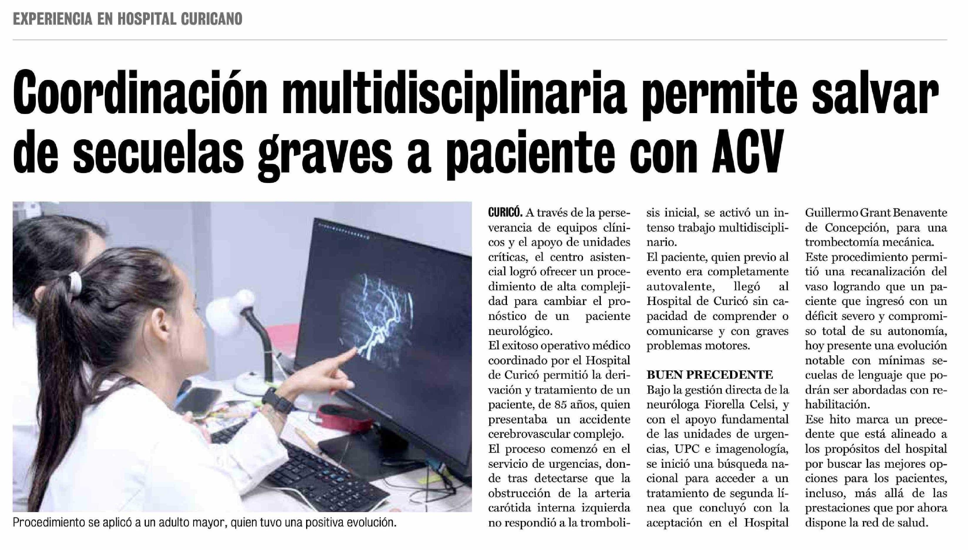 Coordinación multidisciplinaria permite salvar de secuelas graves a paciente con ACV 15-02-2026 La Prensa de Curicó |