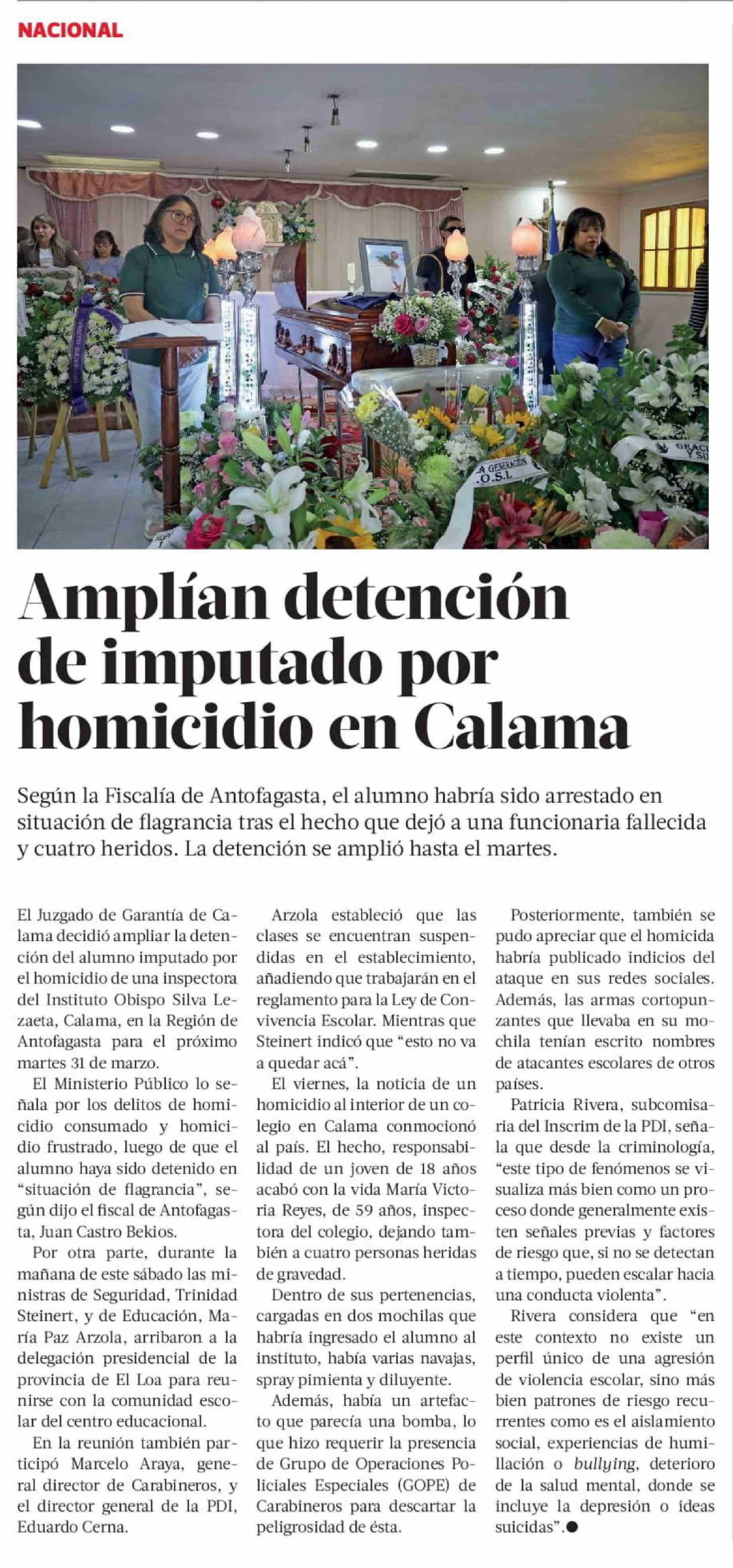 Amplían detención de imputado por homicidio en Calama 29-03-2026 La Tercera |